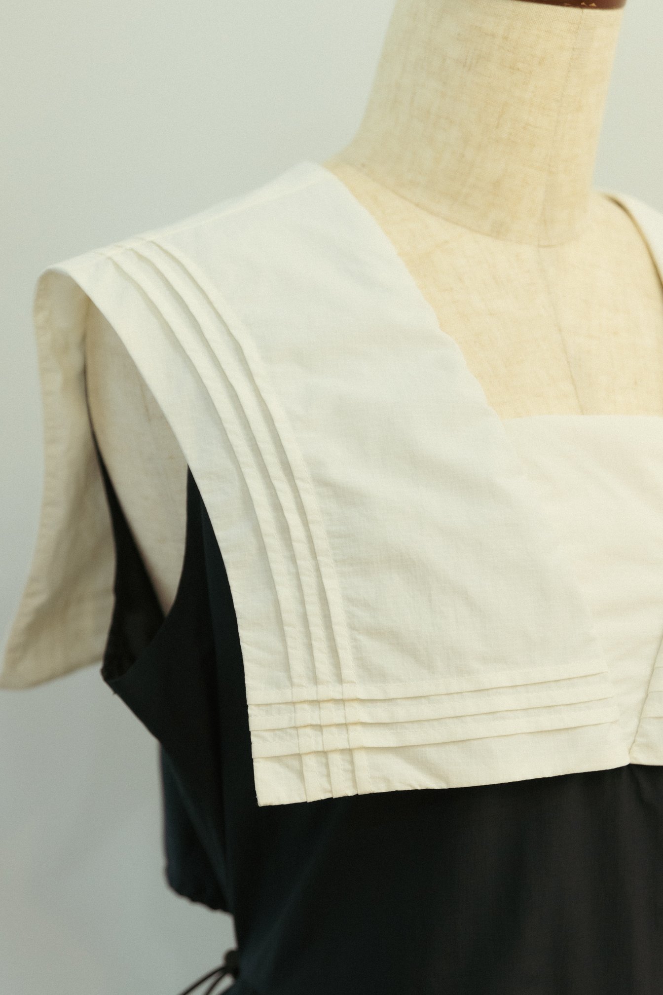 ポワニェでは、自分では作ってみたかったけれど、ルビーのお客さんに向けたデザインではないよな、と却下してきたアイデアを詰め込んでいます。例えば、ルビーでも度々作ってきてたセーラーモチーフは、ルビーではコットンやレース、ヴィンテージライクな素材などを使って甘めに仕上げますが、ポワニェではスポーティなナイロン生地を使ったり、大胆な肌みせや挑戦的なカッティング、ドロストコードを入れることで少しストリート要素を取り入れています。