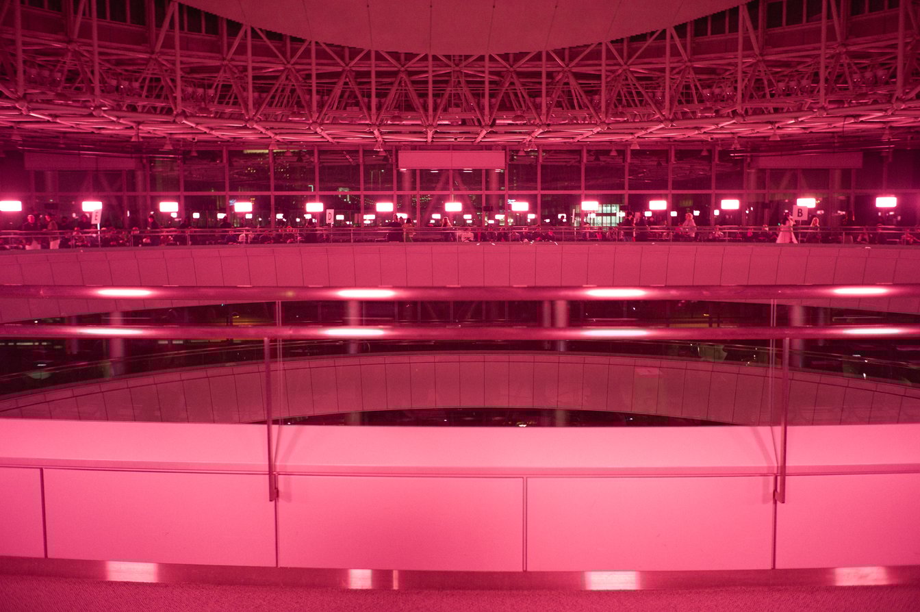 インビテーションにはピンク色が採用されていた。会場も、桜色の照明がたかれ、アンリアレイジ オムのイメージカラーがピンク色であることを印象付ける。アンリアレイジが白黒でソリッドなイメージを持つことを考えればこの時点で、アンリアレイジとは明確な差をつけようとしている森永の考えが垣間見える。ピンクという色は、物理学的にはこの世に存在しない色と言われている。色を形成する固有の波長を持っておらず、人間が勝手に認知し視認している色がピンクであり、人間以外の生物はピンクを認識していないのだ。この実態のない色をキーカラーに添えた理由を森永に問いたところ、以下のように返ってきた。