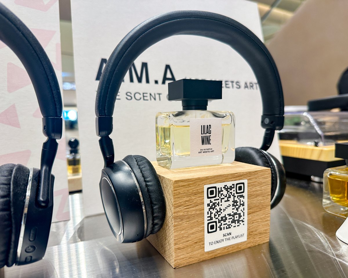 Art Meets Artのフレグランス(NOSESHOP 麻布台ヒルズの売り場のデザイン):フレグランスが“音楽を聞いているような””ディスプレイ