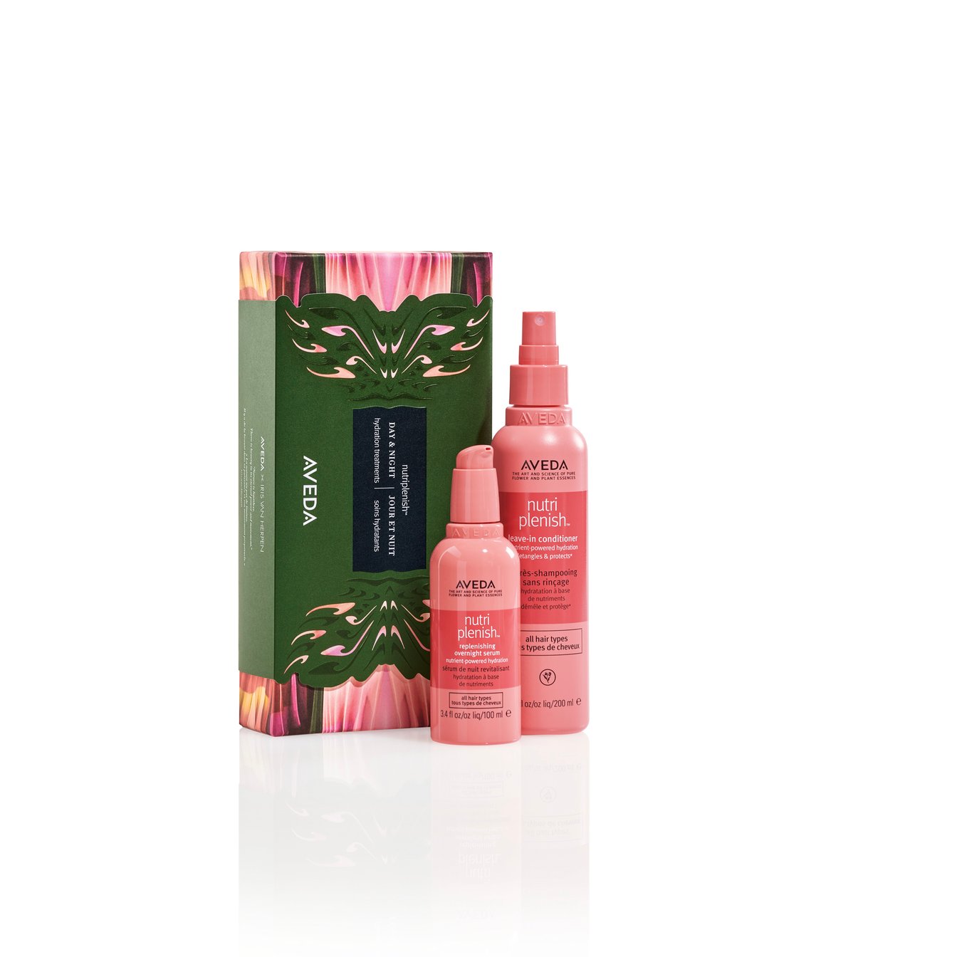 人気の夜用美容液と洗い流さないトリートメントがついたホリデーギフト。翌朝、ツヤのある美しい髪印象へ導いてくれます。