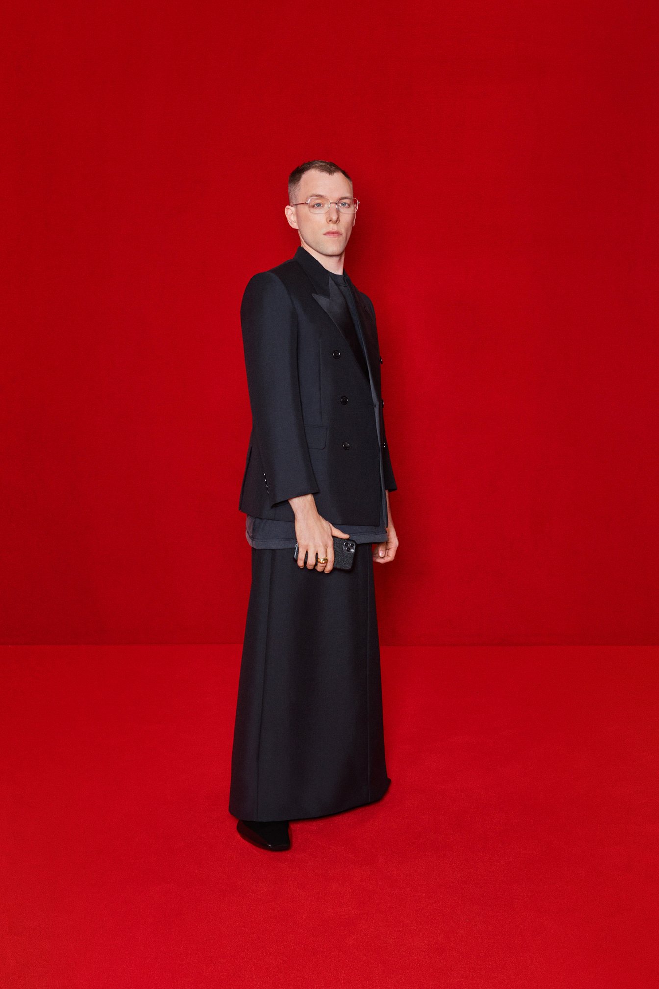 旧態依然なTPOとドレスアップなど恰好の餌食。デムナにとっては模倣され伝播する不機嫌なバーニー・サンダースさんのようなミームに過ぎない。極細のコードの上で、アウトオブファッションの瀬戸際で、己が再定義するブラックタイをメリハリ豊かに醸造していた。