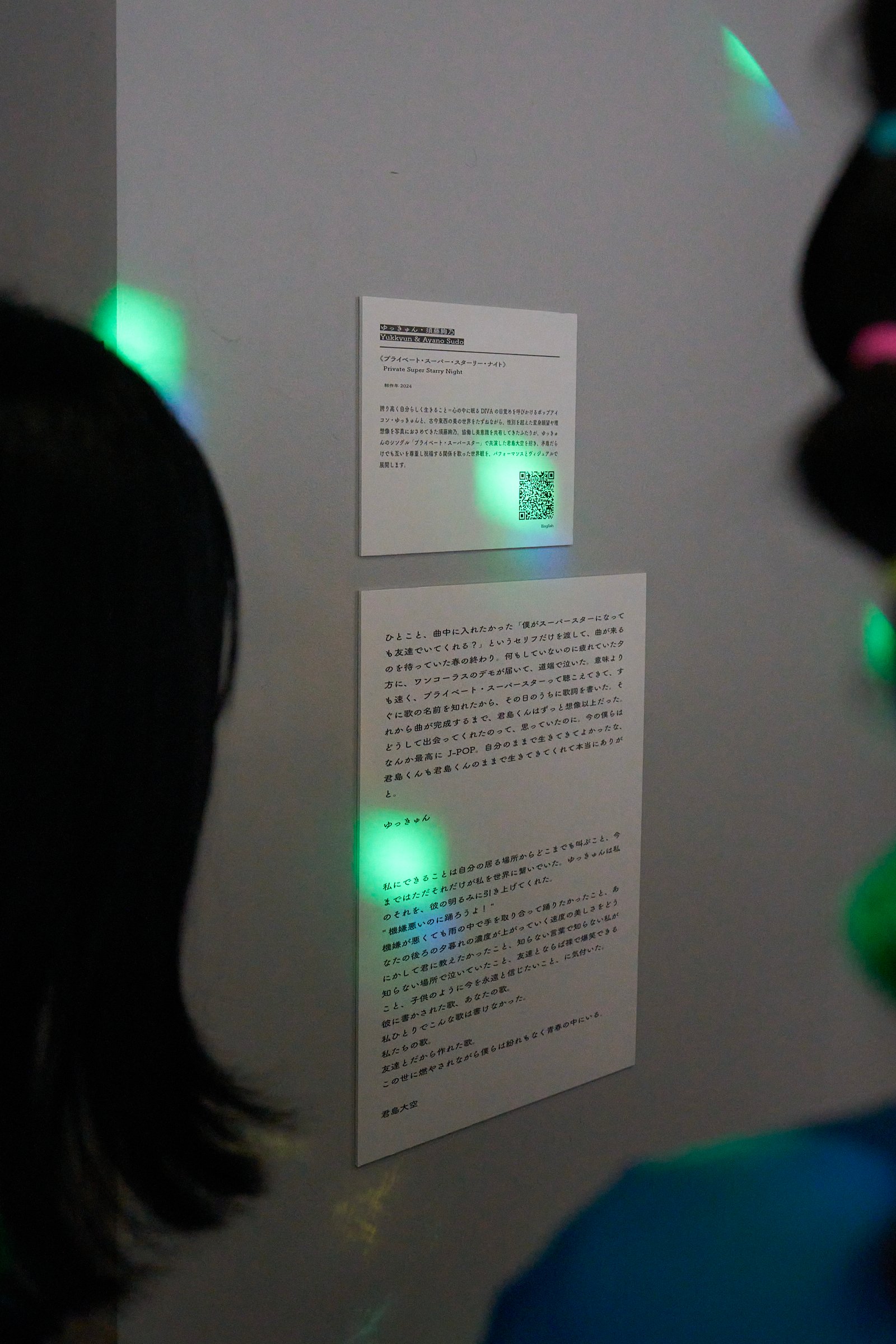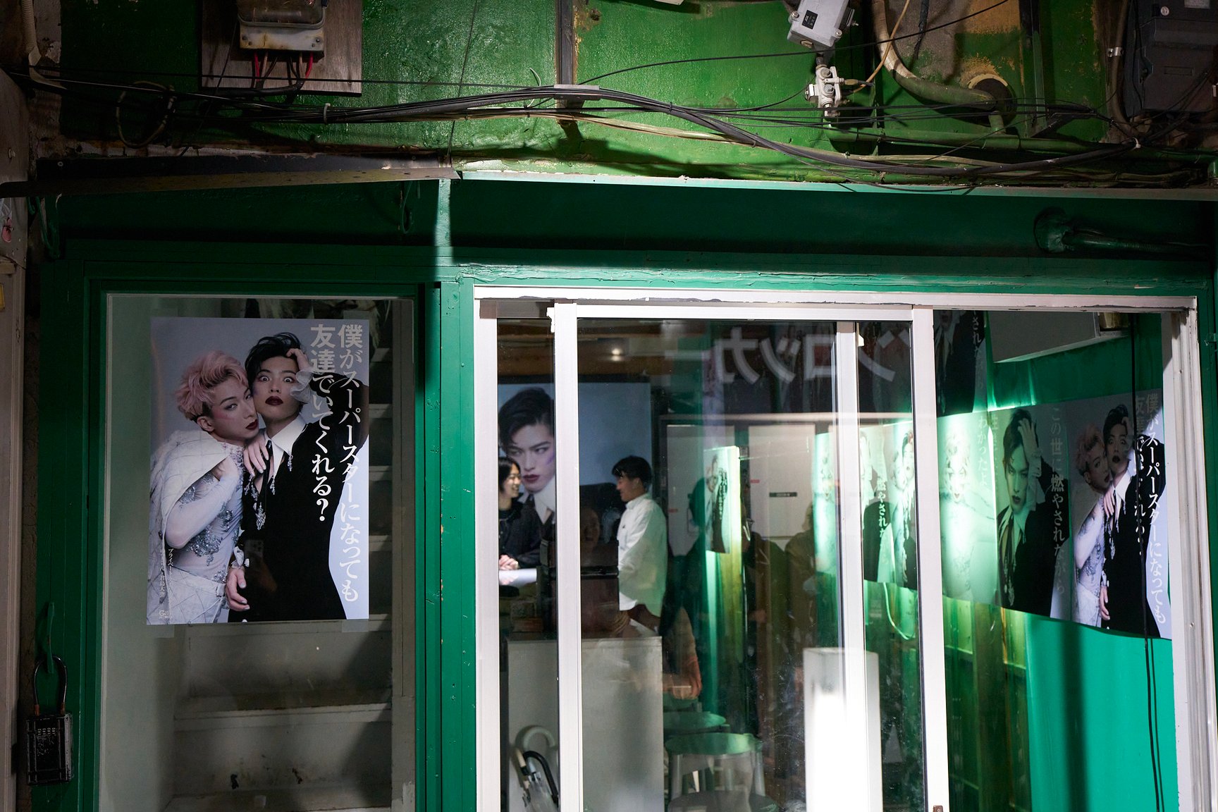 グリーンのカラーがトレードマークのアートギャラリー併設ガールズバー「デカメロン」では、誇り高く自分らしく生きること=心の中に眠るDIVAの目覚めを呼びかけるポップアイコン・ゆっきゅんと、性別を超えた変身願望や理想像を写真に収めてきた写真家の須藤絢乃がタッグを組んで制作したヴィジュアルを展示。これまでも度々協働し美意識を共有してきた2人が、ゆっきゅんのシングル「プライベート・スーパースター」で共演した君島大空を招き、矛盾だらけでも互いを尊重し祝福する関係を歌った世界観を表現したヴィジュアルを、印象的な歌詞の言葉とともに披露しています。