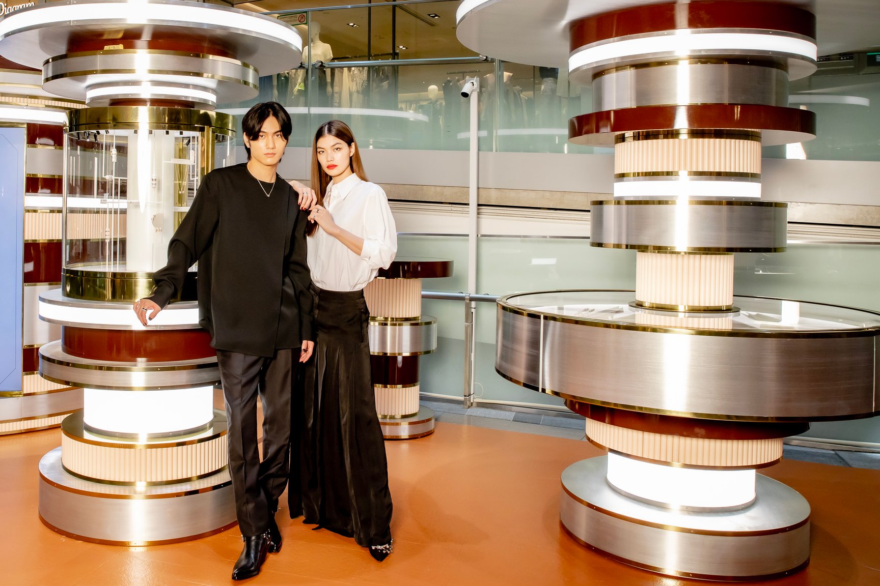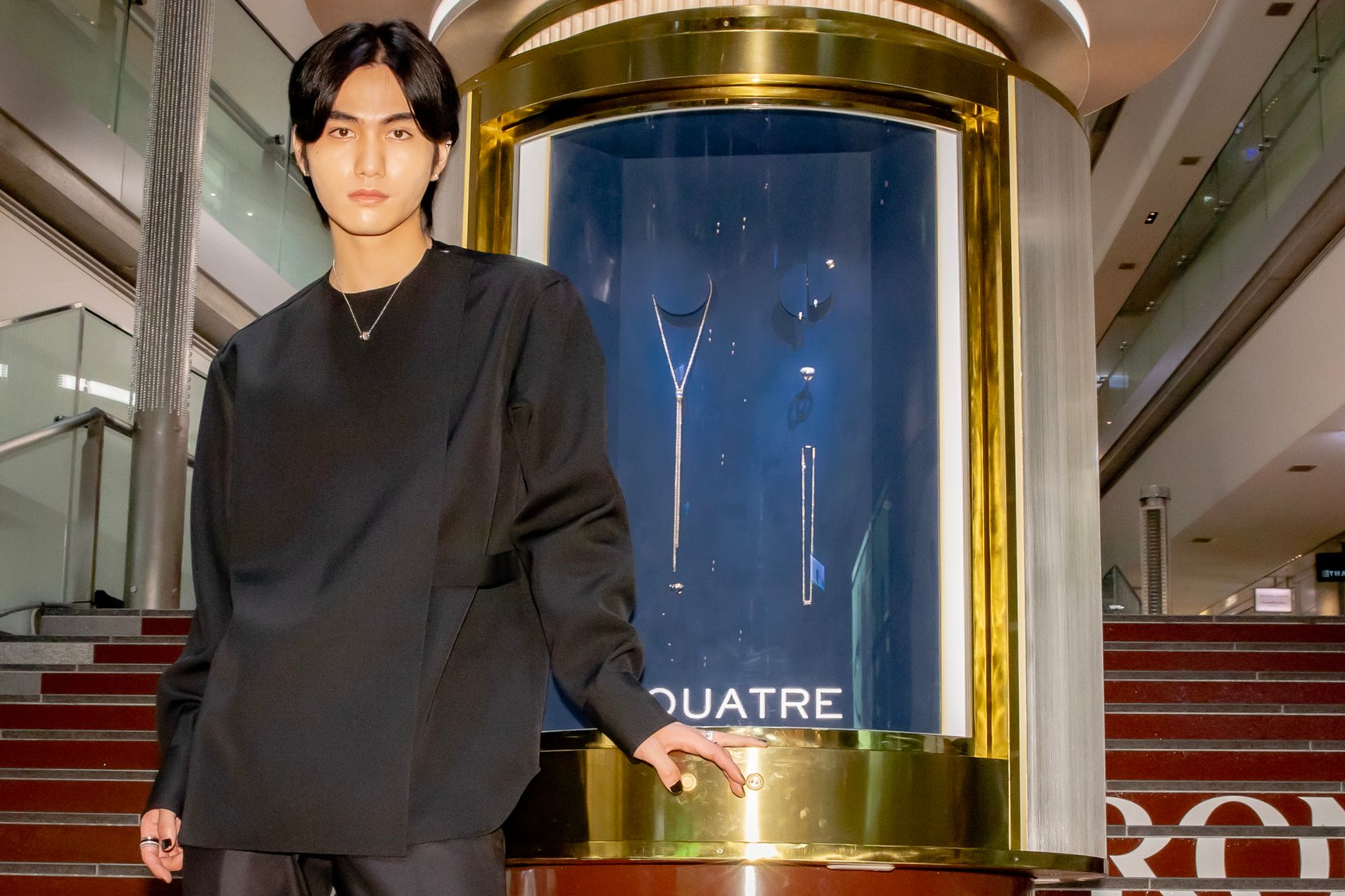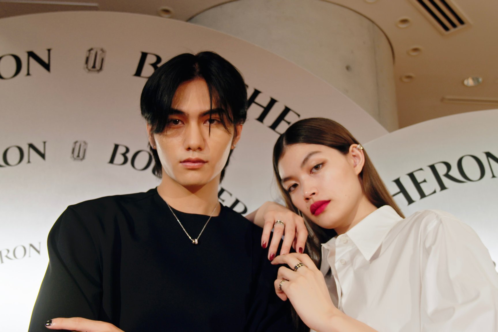フランスを代表するスタイリッシュなハイジュエラー「ブシュロン(BOUCHERON)」が、東京・表参道ヒルズにてポップアップをスタート。8月14日までの期間限定で、アイコンコレクション「キャトル(QUATRE)」をフィーチャーした特別な空間となります。オープン初日にはモデル・俳優・DJの大平修蔵さんと、グローバルに活躍するファッションモデルの福士リナさんが、キャトルブラックのコーディネートで来場。モダンでジェンダーレスなリングやイヤーカフなどを身に着け、キャトルの世界観を堪能しました。