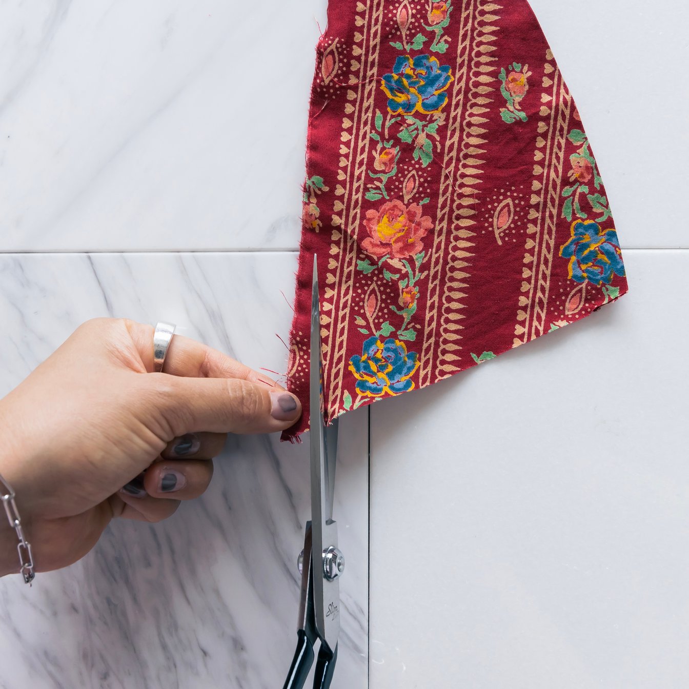 【1】端から1cmほどの箇所にハサミで切れ目を入れる。切れ目をガッと裂く。大胆にやるのがポイント!