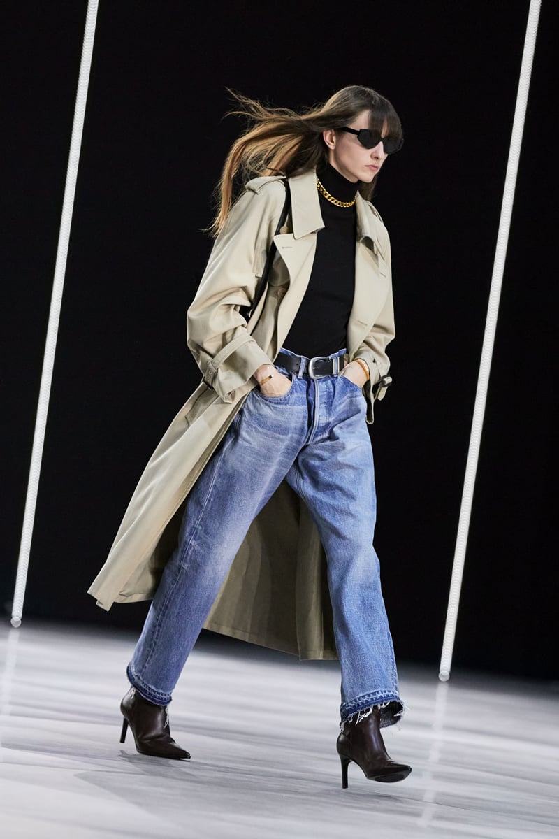 計63ルックからなるコレクションは、「パリジャン・グラン・クラシックへの回帰」がキーワード。上質な素材使いのアウターをオーバーサイズジーンズと組み合わせ、セリーヌが得意とするノンシャラン(無造作)な装いに。ブラックのカシミアタートルネックも多用され、シンプルシックな「パリジャン」のエスプリを感じさせた。
