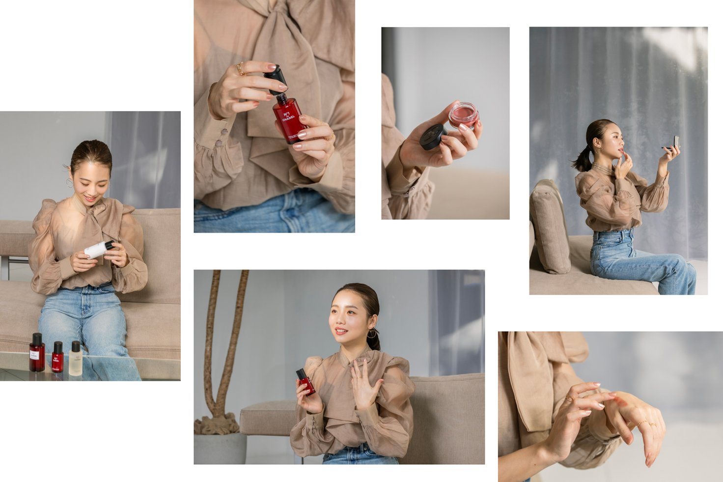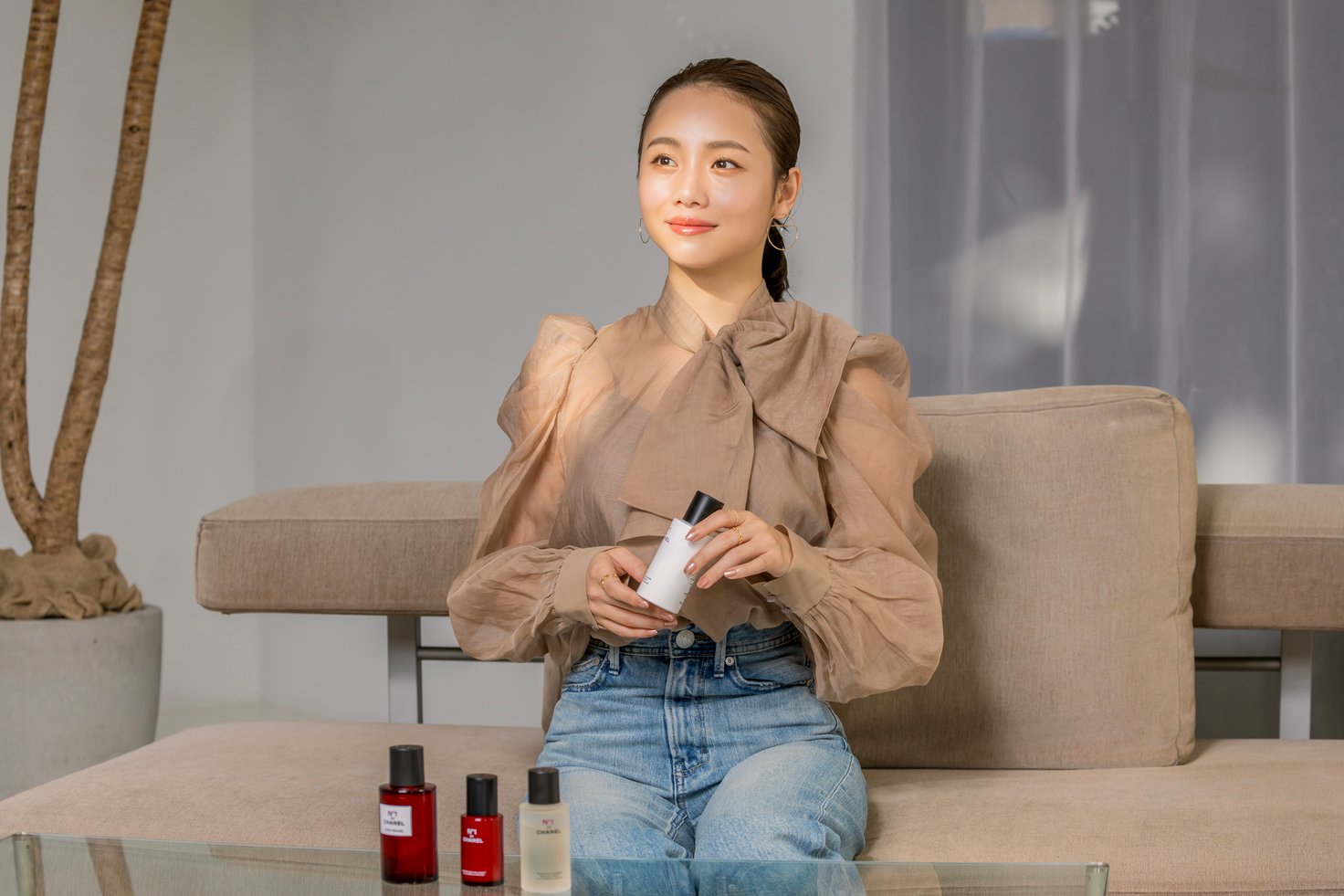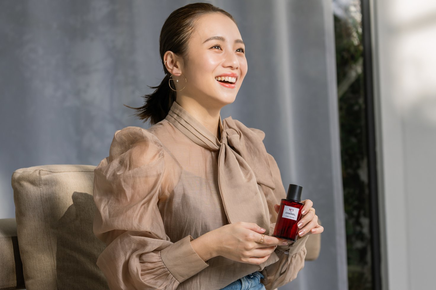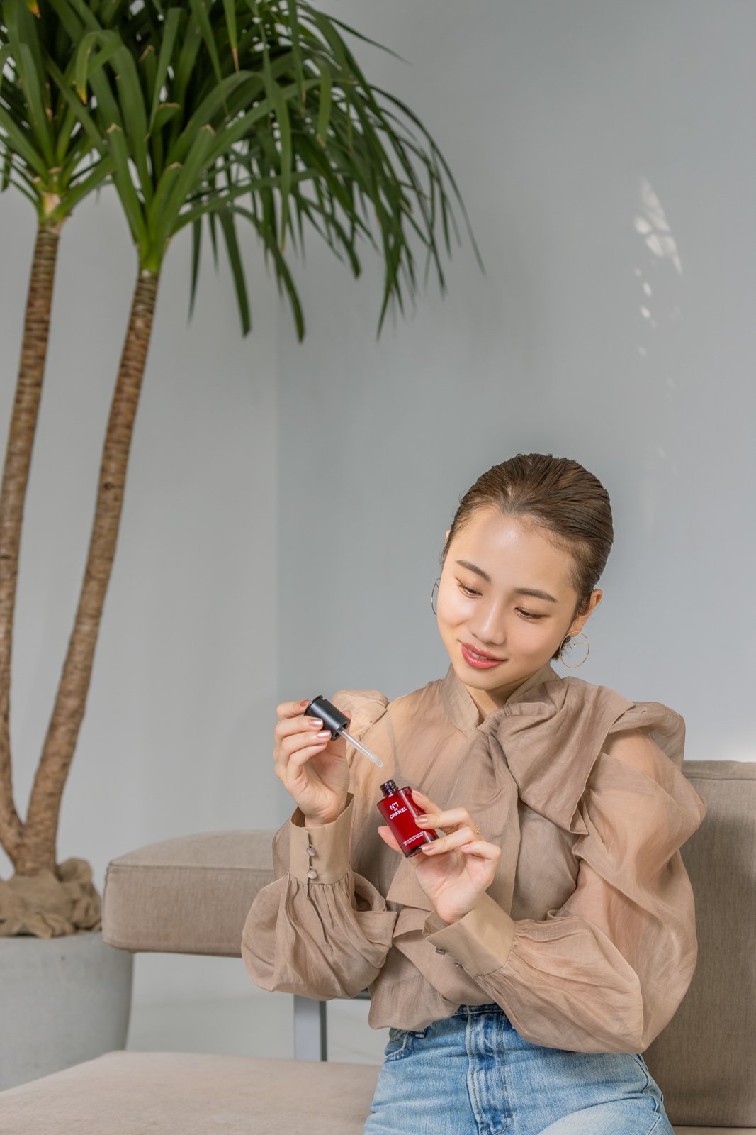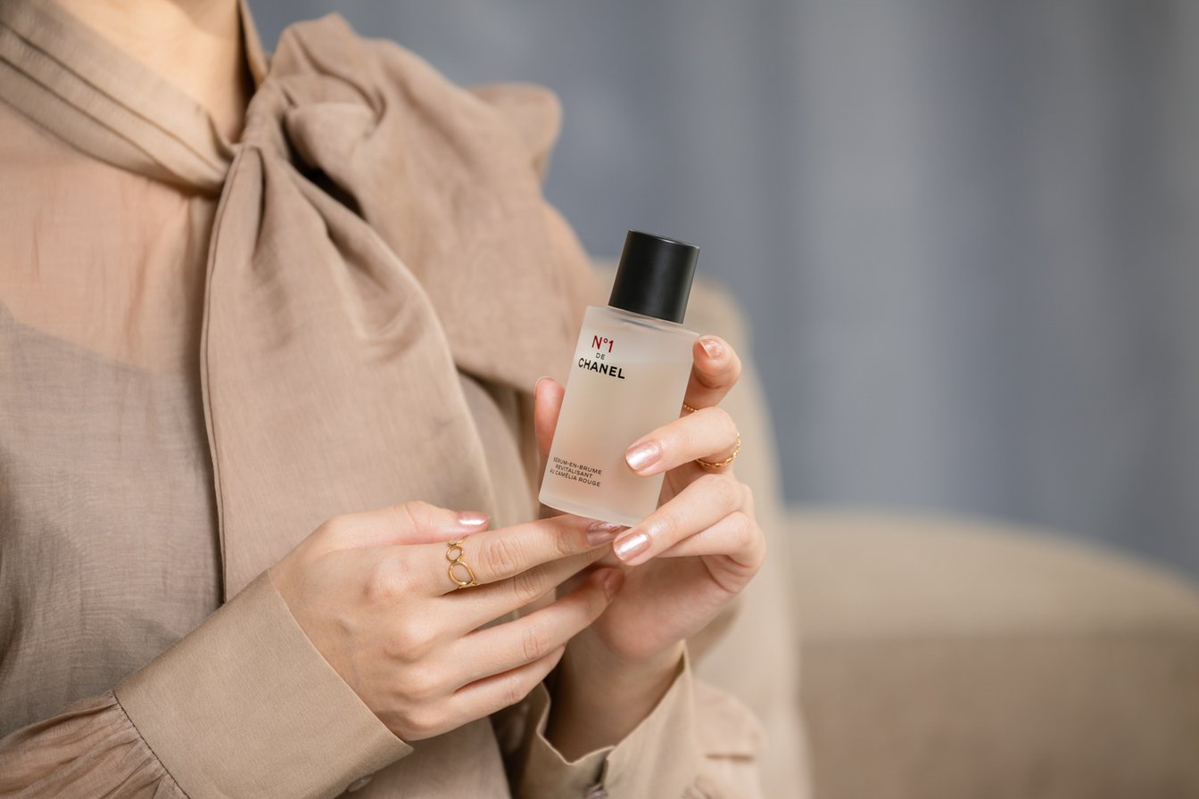 N°1 ドゥ シャネルのスキンケアはどれも優しい花の香りで、心地良いんです。セラム ミスト N°1 ドゥ シャネルはその名の通りミストタイプなので、出先でも手軽に保湿できるし、素敵な香りに包まれてリフレッシュもできる。マスクをすると普段より乾燥が気になるし、夕方になるにつれてどんよりしてきちゃう。ワンプッシュでふわっと香りが広がって、気分が上がるのでお守りみたいに持ち運びたいですね。