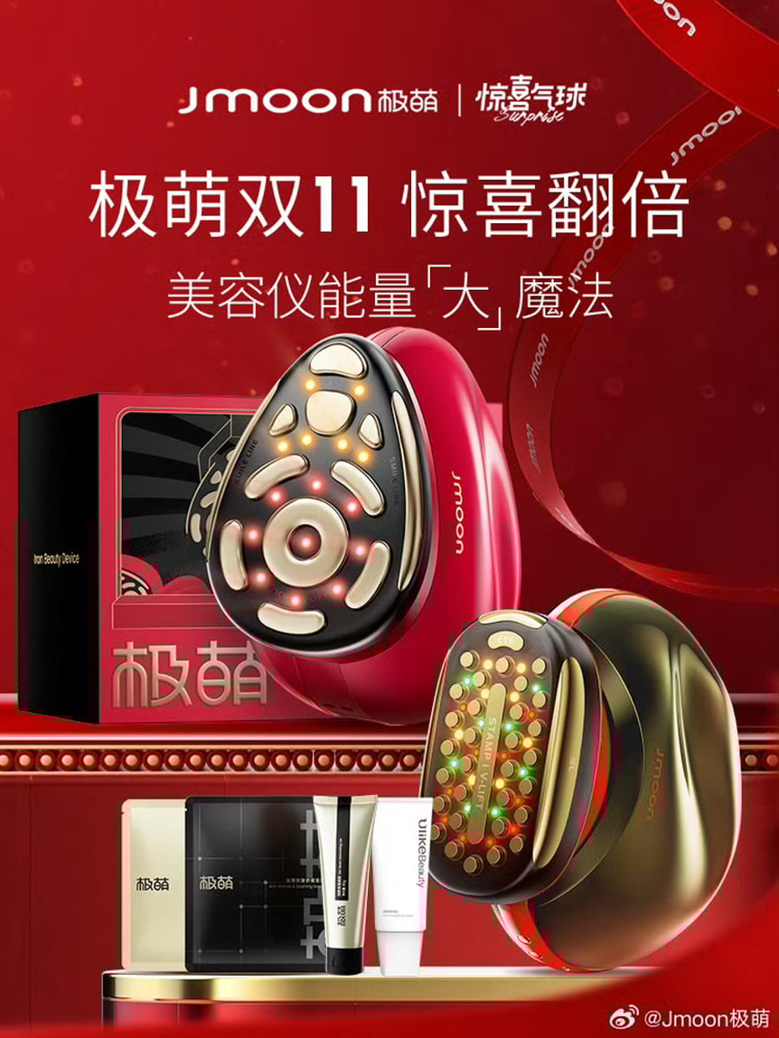 また美容ブランド部門のトップ10には2つの中国産美顔器ブランドが入った。5位の「Jmoon极萌」は、美容脱毛器で有名なブランド「ユーライク(Ulike)」から2021年にサブブランドとして登場。人気アイテムの「ビッグアイロン美顔器pro」はマイクロカレントと高周波の2in1技術を採用し、大きなアイロン形のヘッドが肌との接触面を増やし、素早くケアできると評価を得た。