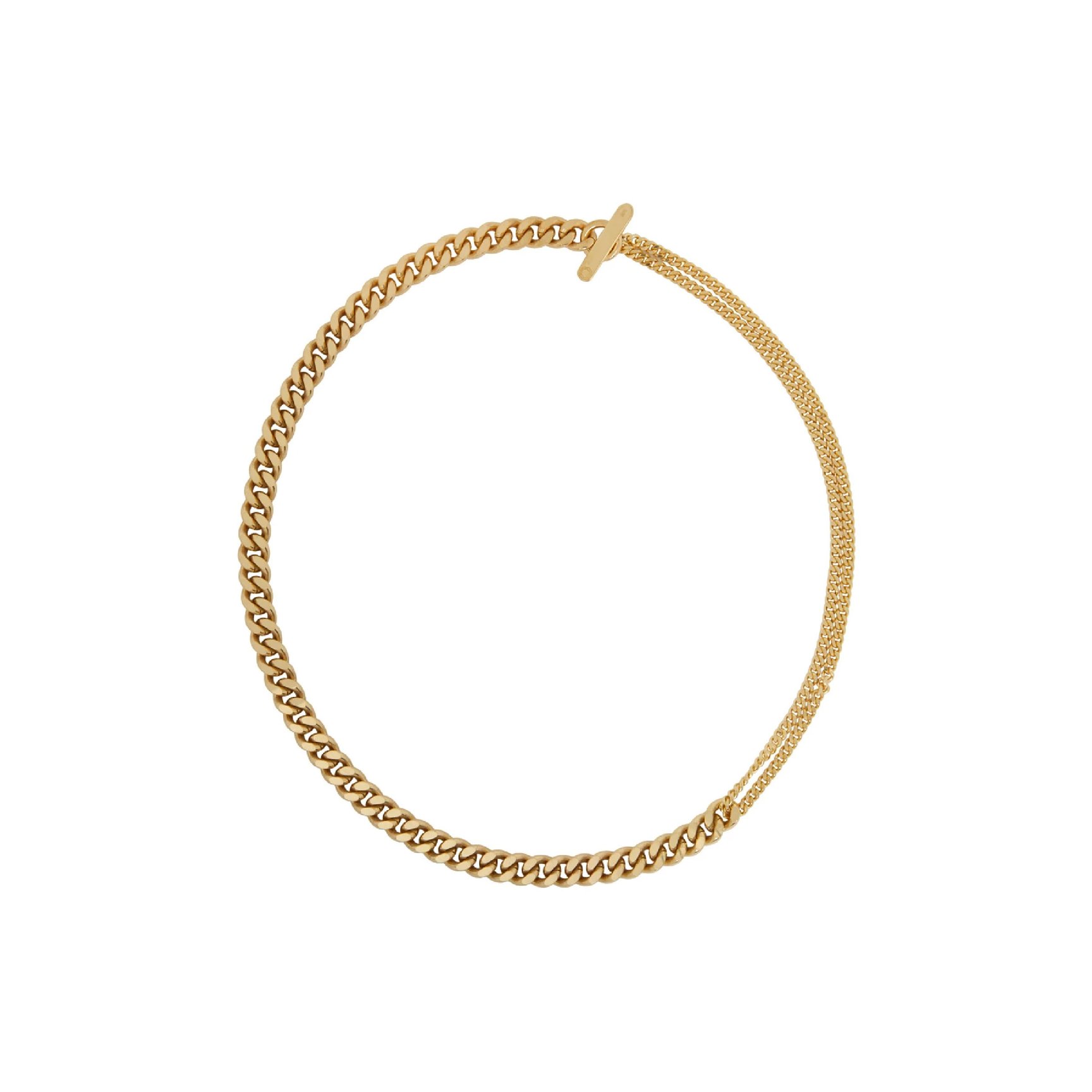 ドイツ・ミュンヘン発のブランド「サスキアディツ(SASKIA DIEZ)」のミックスカーブチェーンチョーカー。2種類のチェーンデザインなので、細いチェーンと太いチェーンをファッションや気分に合わせて使い分けられます。18kゴールドメッキを施したSSENSE限定アイテムです。