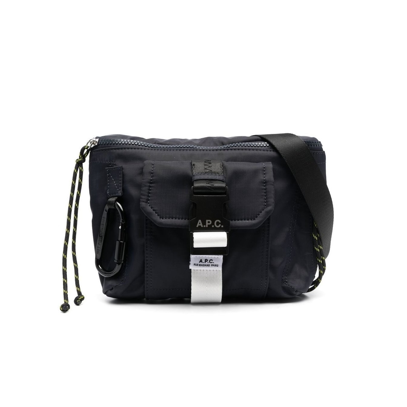 フロントにカラビナ、ジップポケット、フラップポケットを施した「アー・ペー・セー(A.P.C.)」のバッグ。内側にはジップポケットとカード入れも付いているなど、コンパクトながら充実した収納力。強度が強く破れにくいリップストップナイロンを使用しているところも見逃せません。