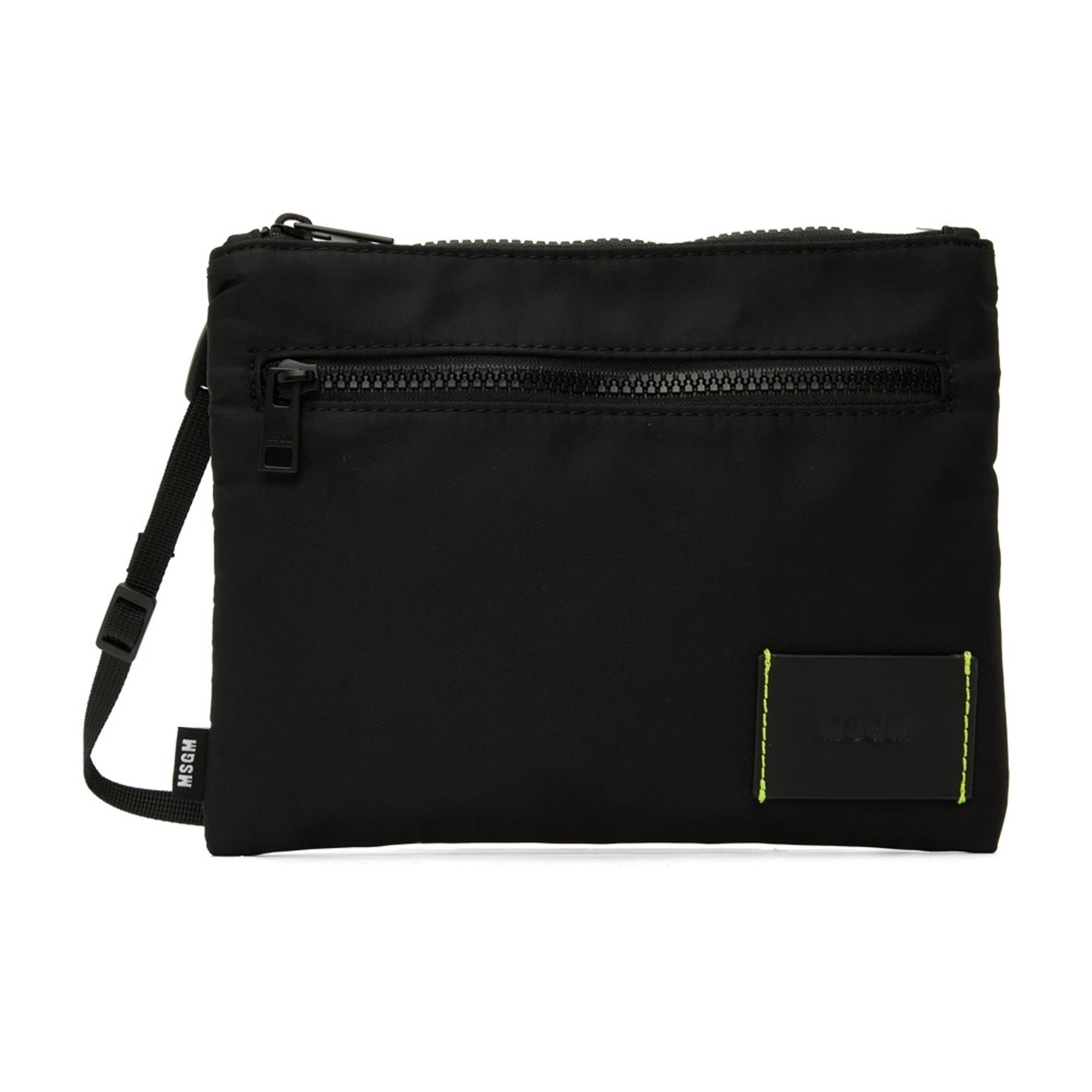 やや厚手でしっかりとした生地感が特徴の、ナイロンツイル素材を使用した「エムエスジーエム(MSGM)」のバッグ。アクティブに使える頼れる存在です。オールブラックのシックなデザインに、蛍光色の縫い目がアクセントを添えます。