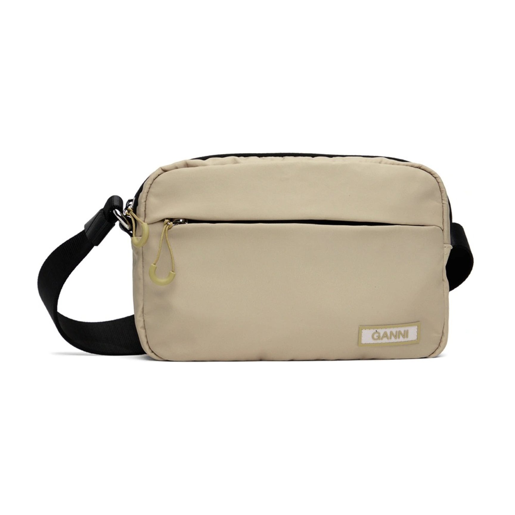 リサイクルポリエステルを採用し、環境にも配慮した「ガニー(GANNI)」のバッグ。フロントポケットのジップ部分は隠れるデザインになっているため、ミニマルでスタイリッシュな印象で持つことができます。ラバー加工のロゴパッチが程よくアクセントにひと役。