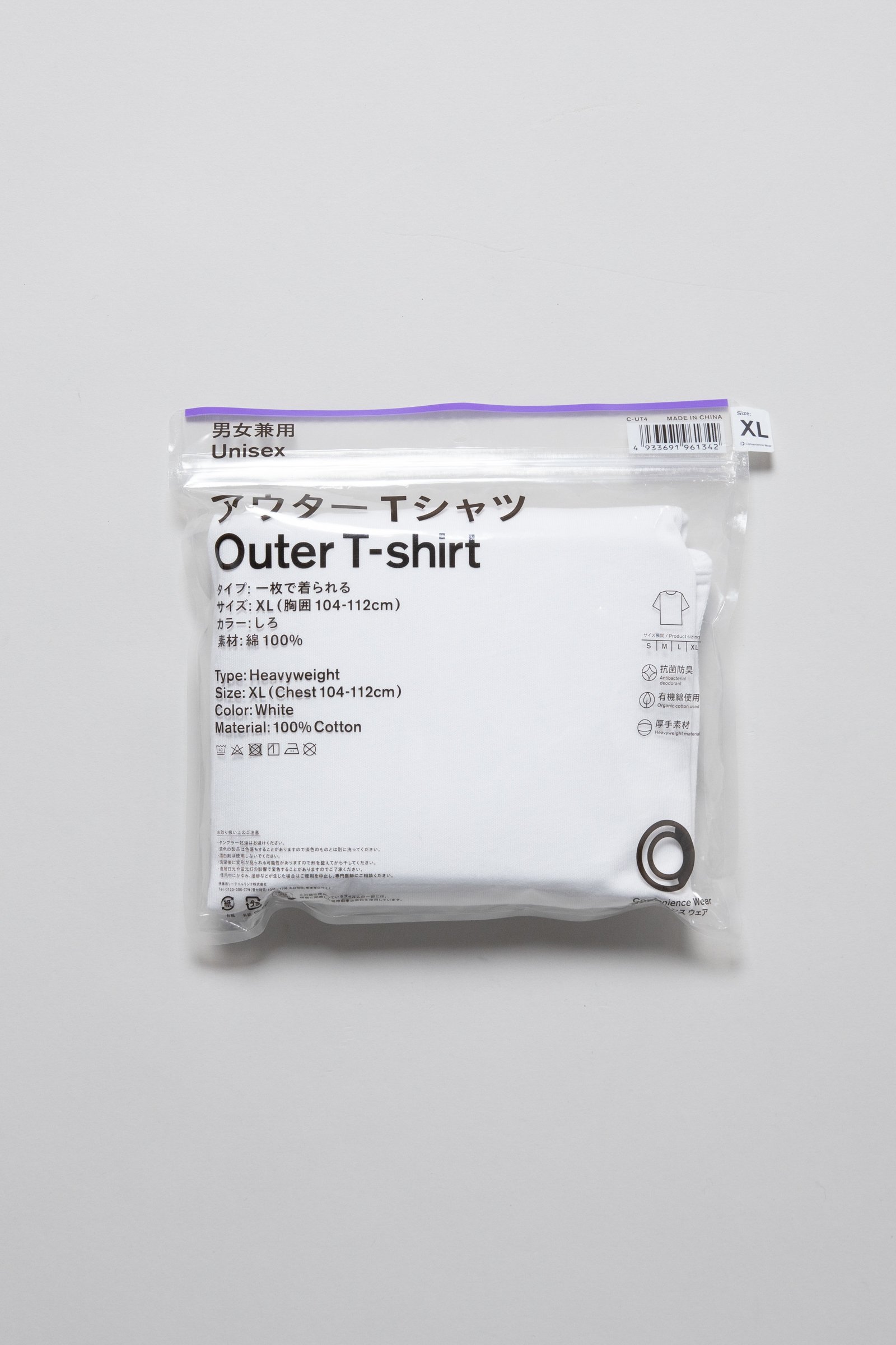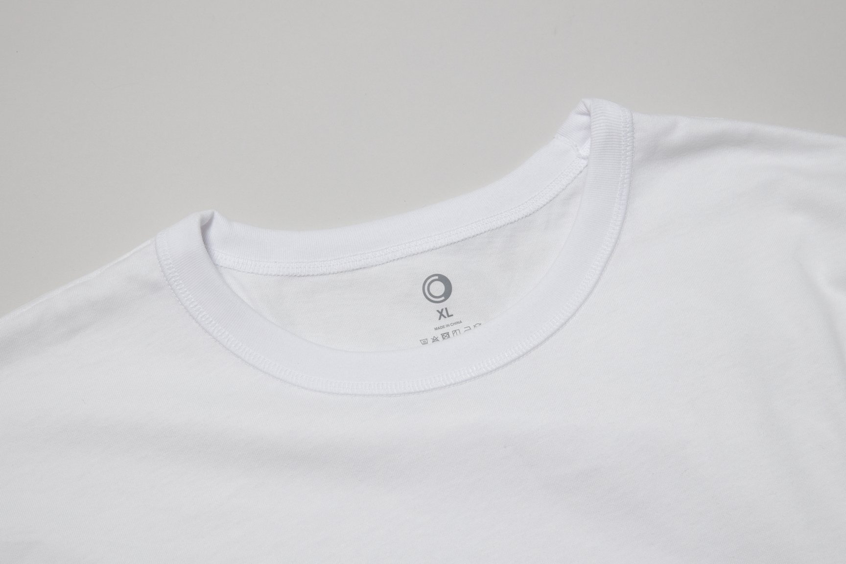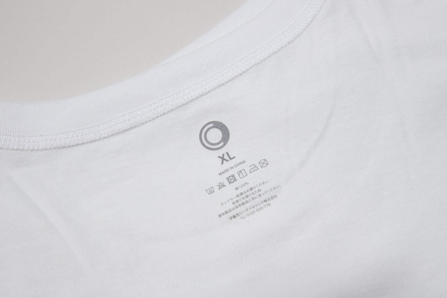 クルーネックで首元にはコンビニエンス ウェアのロゴや、サイズ表記、取り扱い絵表示をプリント。首のリブ幅は2cmで平均的な太さでした。厚手仕様で、商品名の通り1枚で着られるアイテム。インナーTシャツをメインに展開しているコンビニでアウターTシャツは珍しく、白T好きには是非試してもらいたい一枚です。