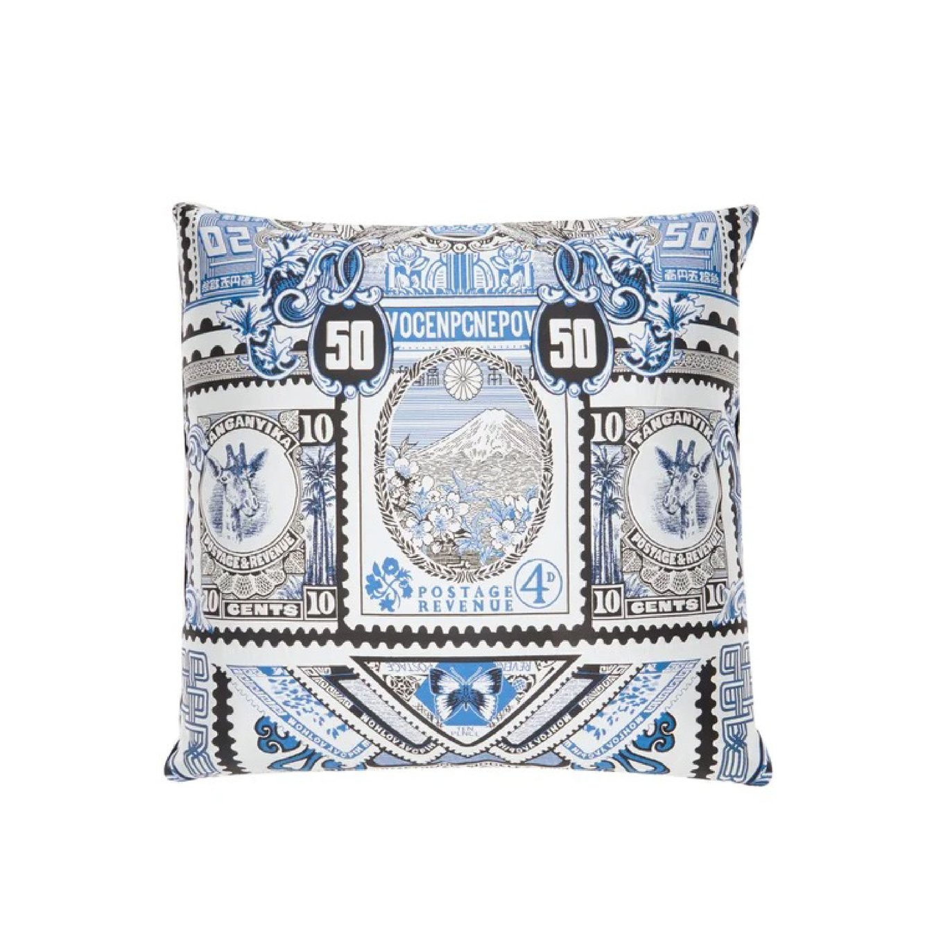他にはない鮮やかなプリントで人気を博している「メアリー・カトランズ」からは、爽やかなブルー×ホワイトをベースにした夏にぴったりのクッションをご紹介。ブランドが生み出すカラフルで神秘的なファッションアイテムの美しさを、リラックスタイムにも存分に堪能できます。2021年は「ブルガリ(BVLGARI)」とのコラボバッグやフレグランスを発表し、さらに注目を集める存在となりました。