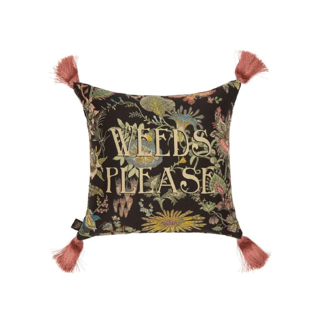 レトロでモダンなフラワーモチーフは、「ハウス・オブ・ハックニー」が得意とするデザインパターン。おとぎ話にでてくるようなイラストと刺激的なメッセージが遊び心のあるクラシカルなクッションです。