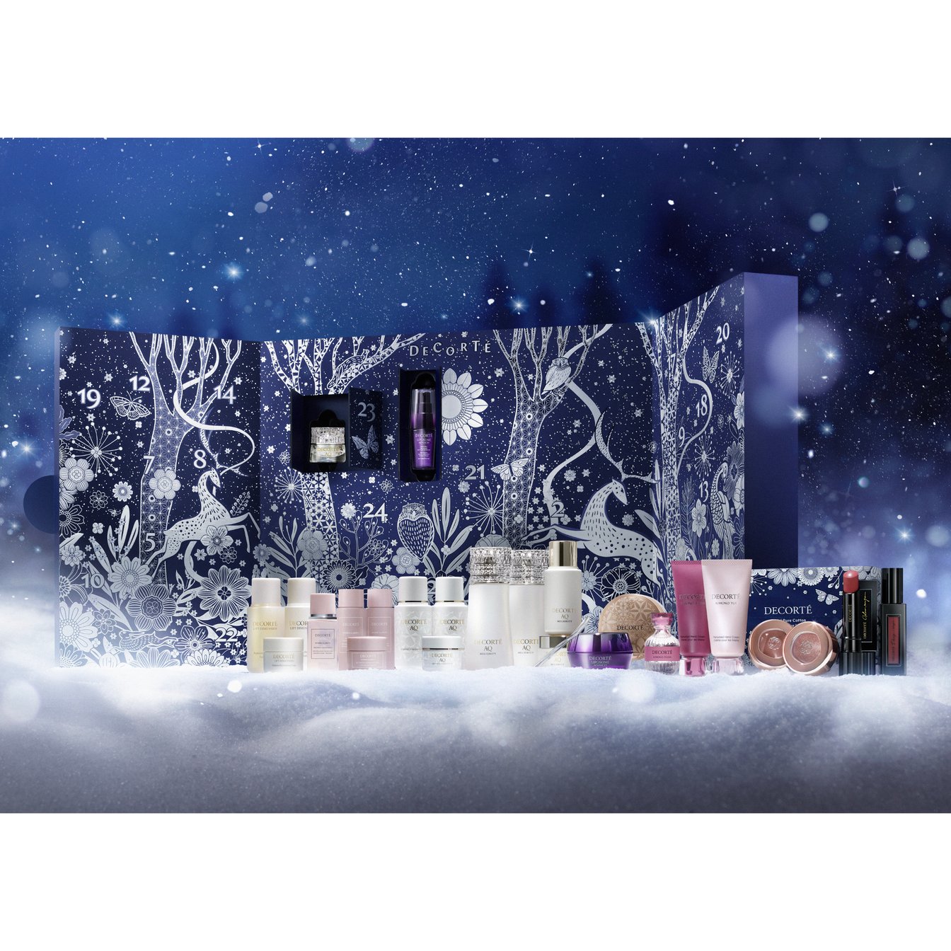 コスメデコルテの2023年コフレは、雪の輝きが溶け込んだような透明感を叶えるメイクコフレと、スキンケア、フレグランス、メイクアップの25アイテムが1つになったアドベントカレンダーが登場。華やかな気分を演出するアイテムです。