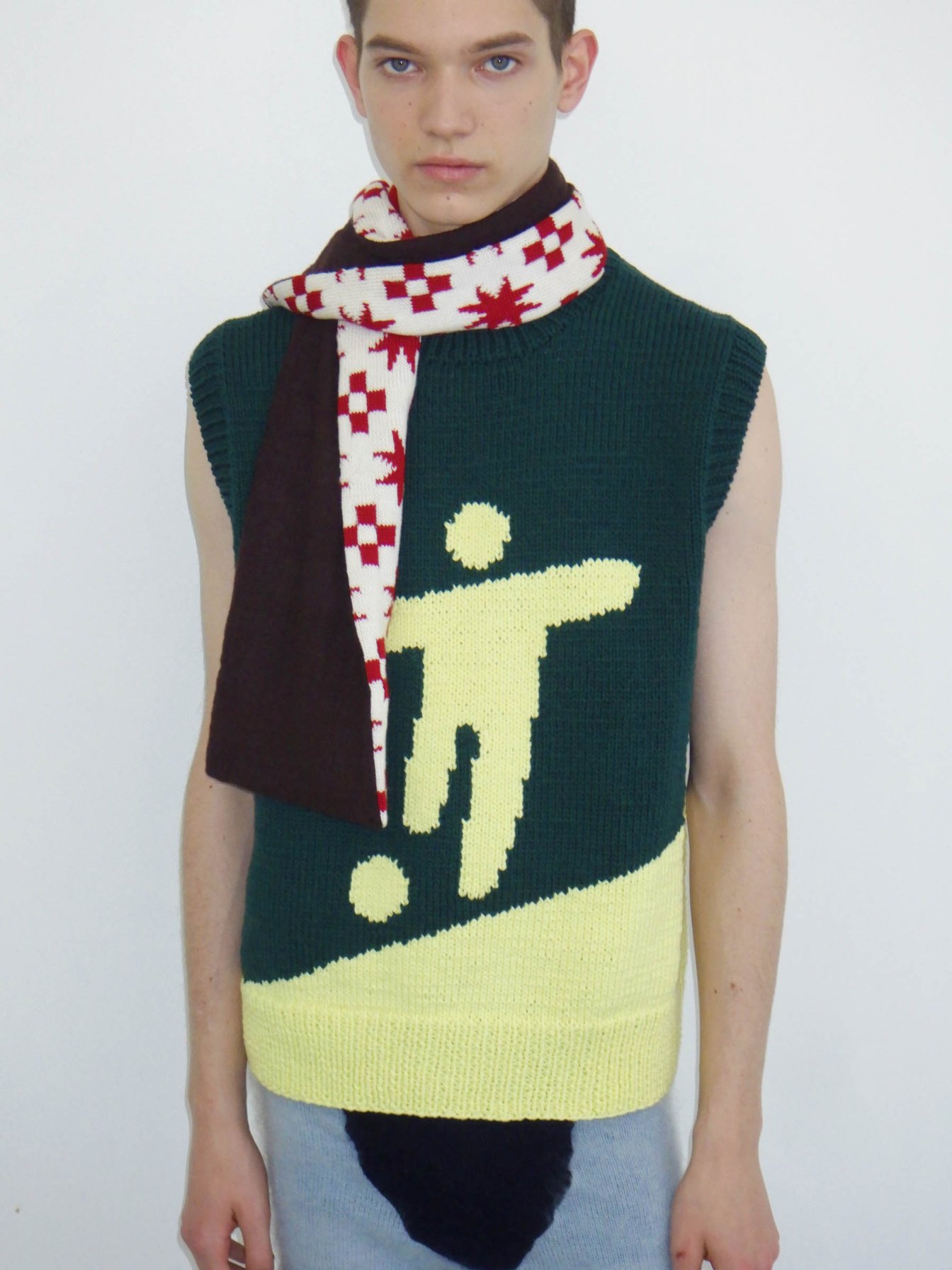 ーたしかに毎シーズンの印象は違いますが、共通するムードはあるなと。例えば、このマッスルニットはどのようなインスピレーションからですか?ざっくりした編みはこれまでのフルスらしさを感じましたが、体に沿ったシルエットが新鮮で、いまイメージボードに貼ってあるハリー・スタイルズ(Harry Styles)も似合いそうだなと思いました。