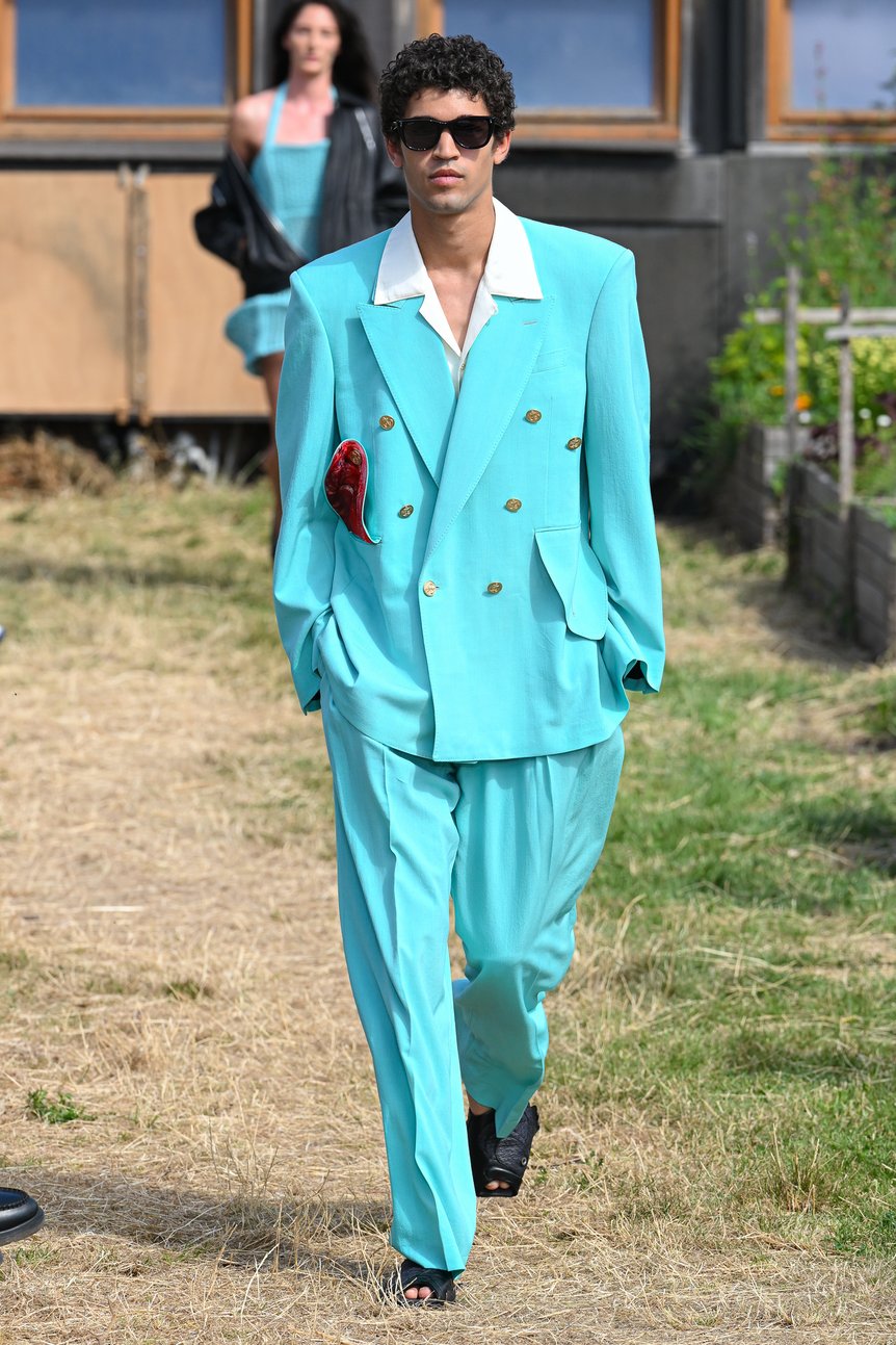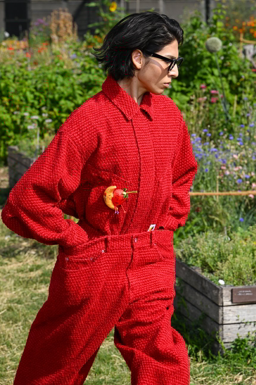ダブレットが2026年春夏コレクションで示したのは、単なるエコフレンドリーな素材選択を超えた、より包括的かつ文化的な持続可能性のヴィジョンだった。ショーに先立ち配布されたコレクションノートには「良い素材とは何か?」「本当の贅沢とは何か?」という根源的問いが記されており、これらの問いかけは、現代のファッション産業が直面する本質的な課題を鋭く突いている。
