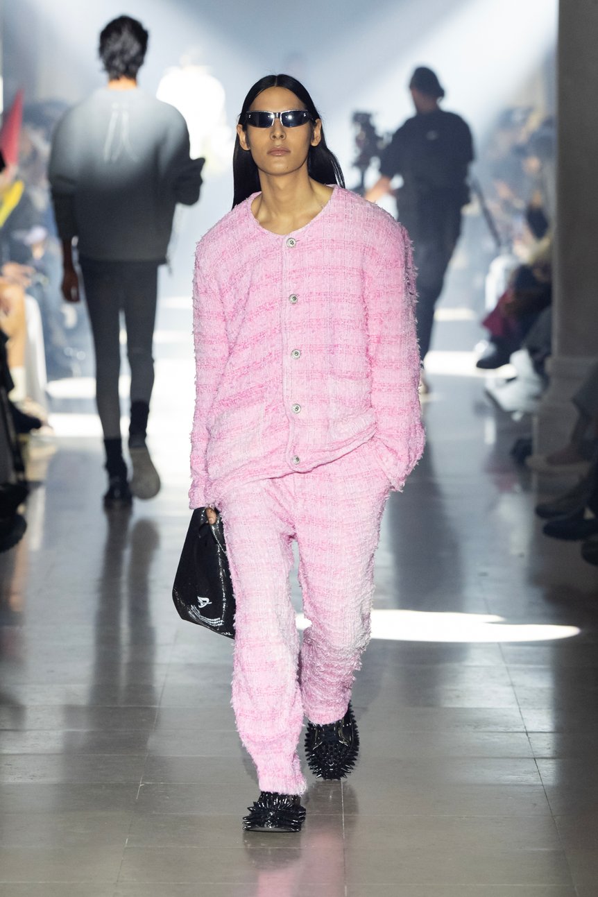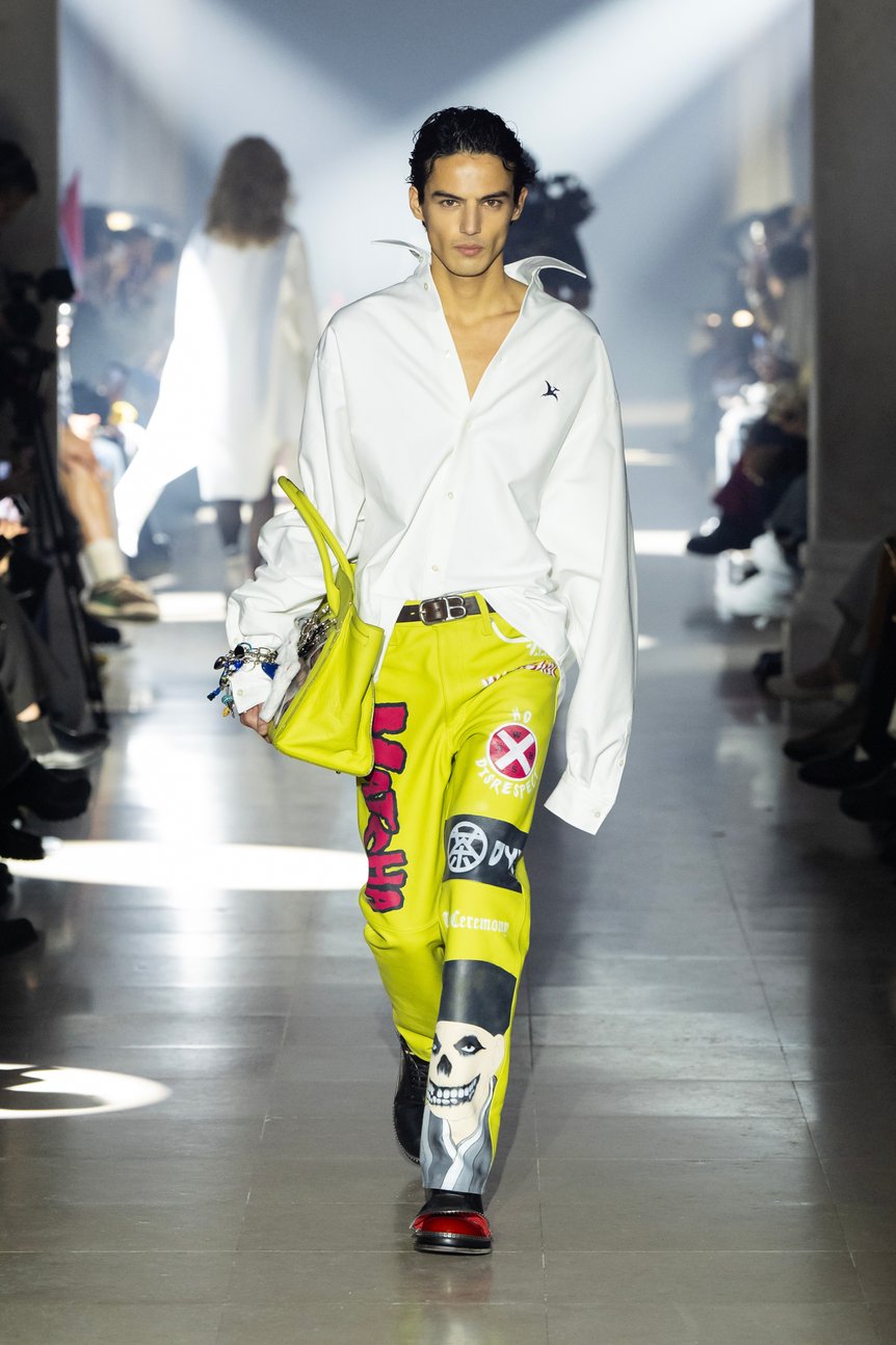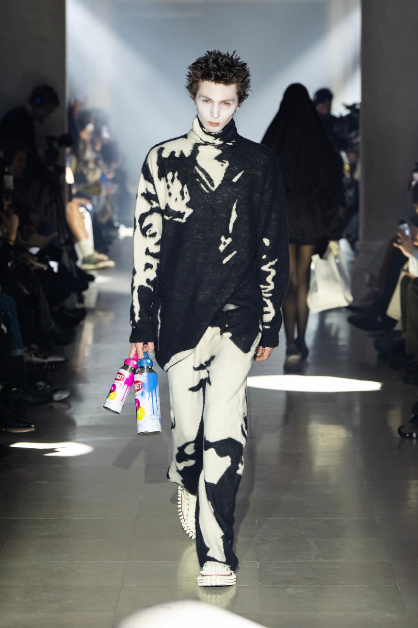 ショーは、小雨が降るパリの寒空のもと、リュクサンブール公園の近くに位置するパリ薬学部で開催。会場には「SOMEONE'S HEART(誰かの心)」と書かれたハート型のスクイーズ(握りつぶしたり、伸ばしたりしてストレスを発散する玩具)が置かれた。特にブランドから説明はなかったが、恐らくは人の心を踏み躙って悦に浸る現代人を憂い、隠喩として表現したものだろう。