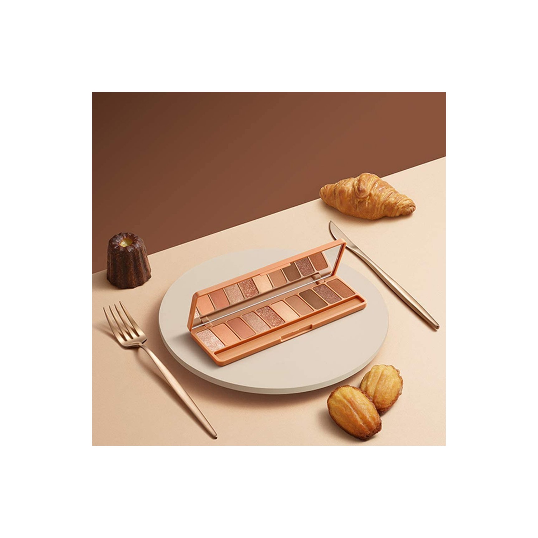 焼き立てのパンをテーマにした、「エチュード」のブラウン系アイシャドウパレットです。ベージュからこっくりとしたブラウンまで、自然なグラデーションを作れるカラーが揃います。マット、グリッター、シマーの3種類のテクスチャーを自由に組み合わせれば、ナチュラル+αの印象的な目元が完成します。ソフトな印象のブラウンメイクならおまかせの一品。10色入り。