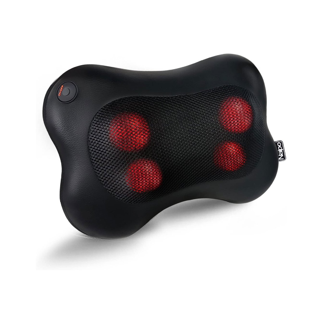 持ち運びが簡単なマッサージ枕。座っている時だけでなく、ゴロンと横になっている時にも気軽に使えます。首や肩だけでなく、ふくらはぎや二の腕にも使えるのもポイントです。癒しをプレゼントするのもアリ。