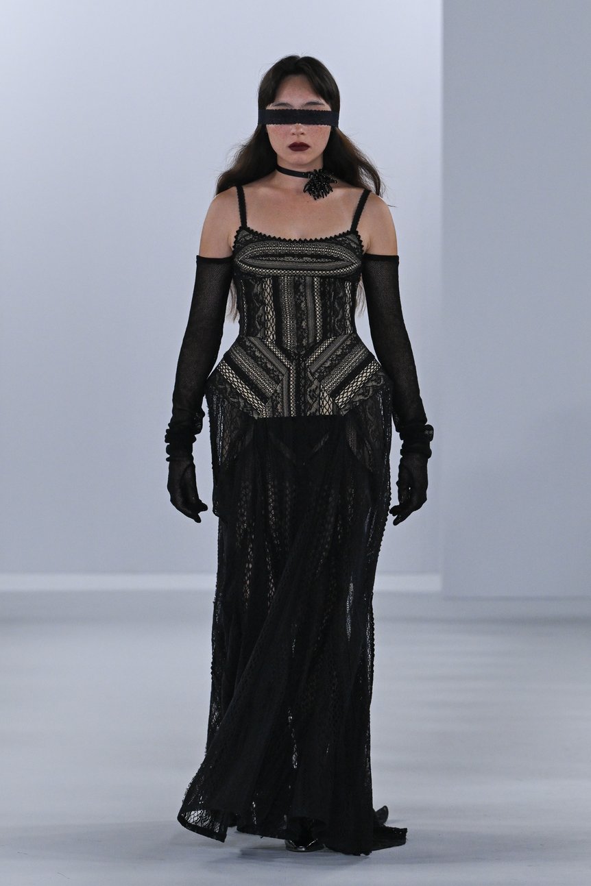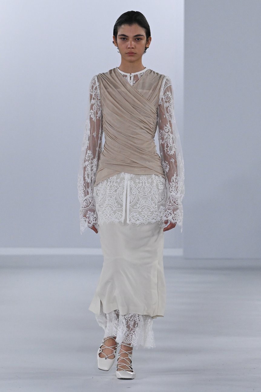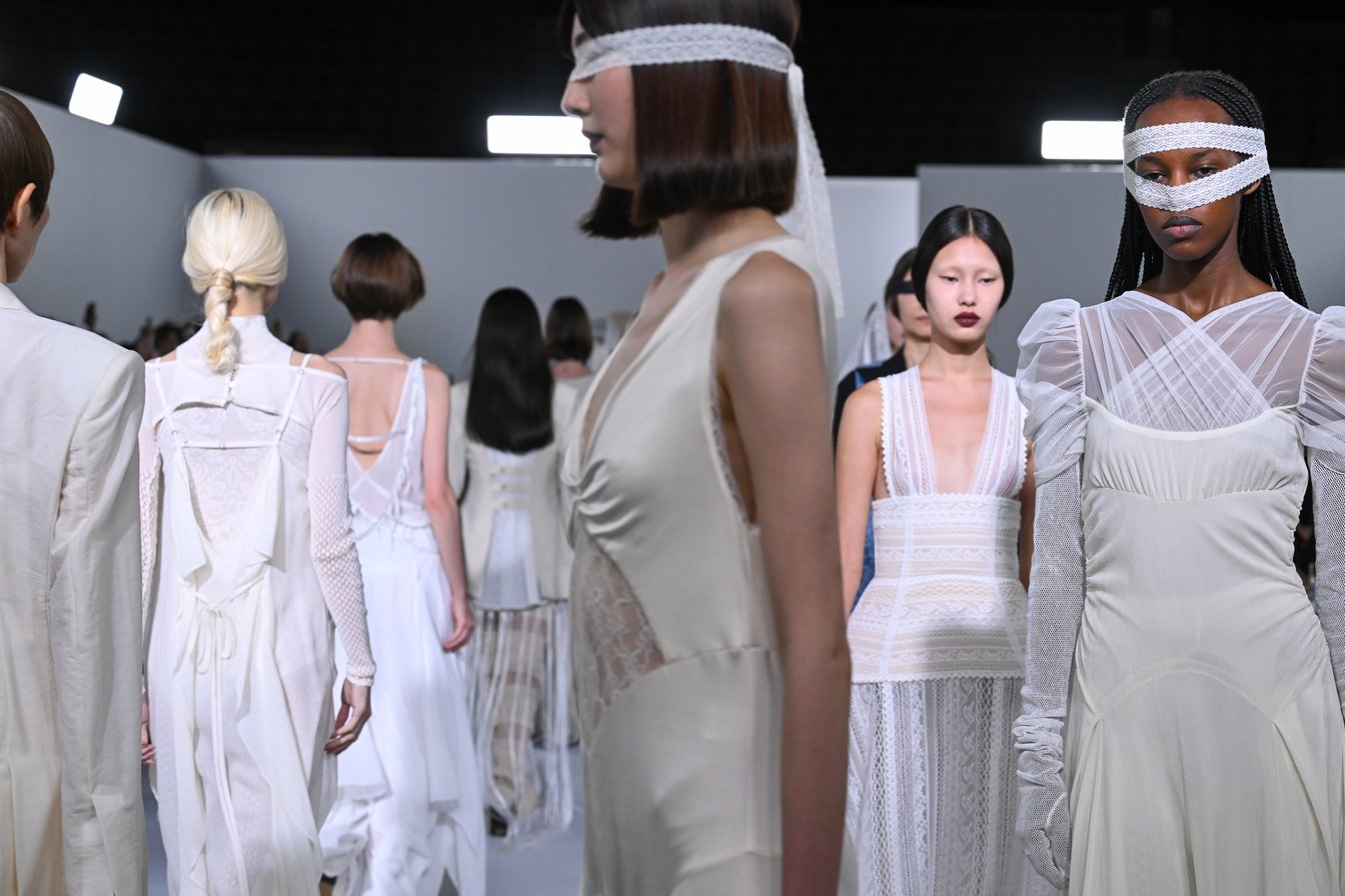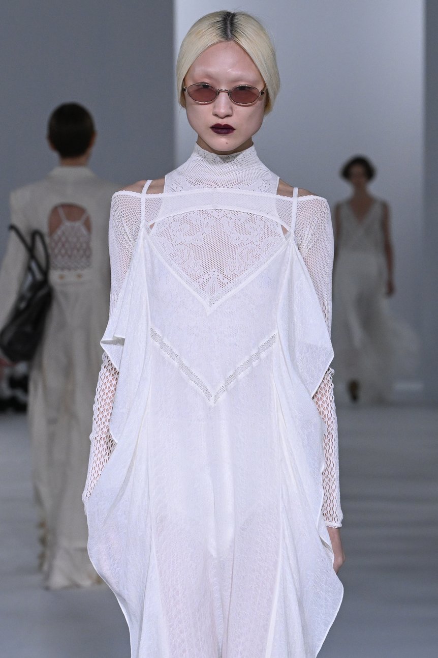 そのような中、舟山瑛美が手掛ける「フェティコ(FETICO)」は、デビュー以来一貫して「The Figure : Feminine(その姿、女性的)」をコンセプトに掲げ、女性の身体を美しく魅せるシルエットやディテールを追求した服づくりを通して女性性を肯定し、女性の自己愛を後押ししてきた。なかでも毎シーズン象徴的に登場するのが、“ランジェリールック”やボディコンシャスなシルエットだ。舟山はなぜそれらにこだわり、繰り返し提示し続けるのだろうか。「改めてブランドのアイデンティティを見つめ直し、より深く追求することを目指した」と語る2026年春夏コレクションを通して、その理由を紐解いてみたい。
