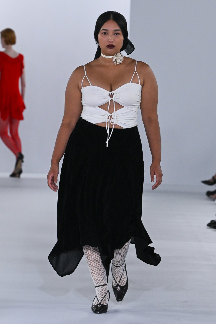 そして、過去のコレクションでも示していた通り、舟山が“美しい”と考える女性像は決して画一的ではない。その思いは起用するモデルにも反映されており、今季は2024年秋冬にも登場した小柄でグラマラスな体型の女性モデルをはじめ、人種や肌の色、年齢、髪型、体型、メイクのスタイルなど、これまで以上に人物像に多様性が感じられた。