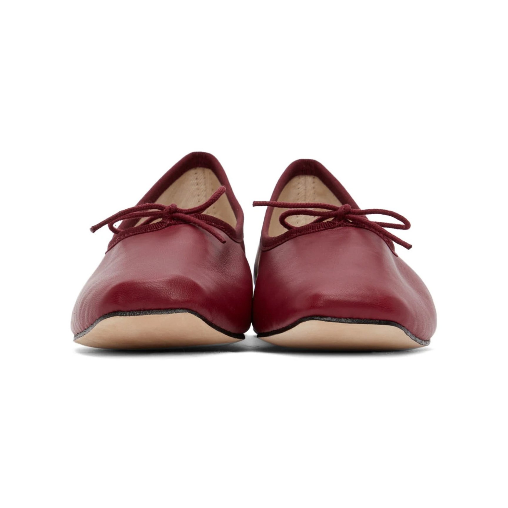 SSENSE限定「レペット(Repetto)」のバレエシューズ。こっくり深みのある赤が女性らしい足元を演出してくれます。やわらかなラムスキンや、ヒールも2.5cmと程よい高さで履き心地も可愛さも叶えてくれます。
