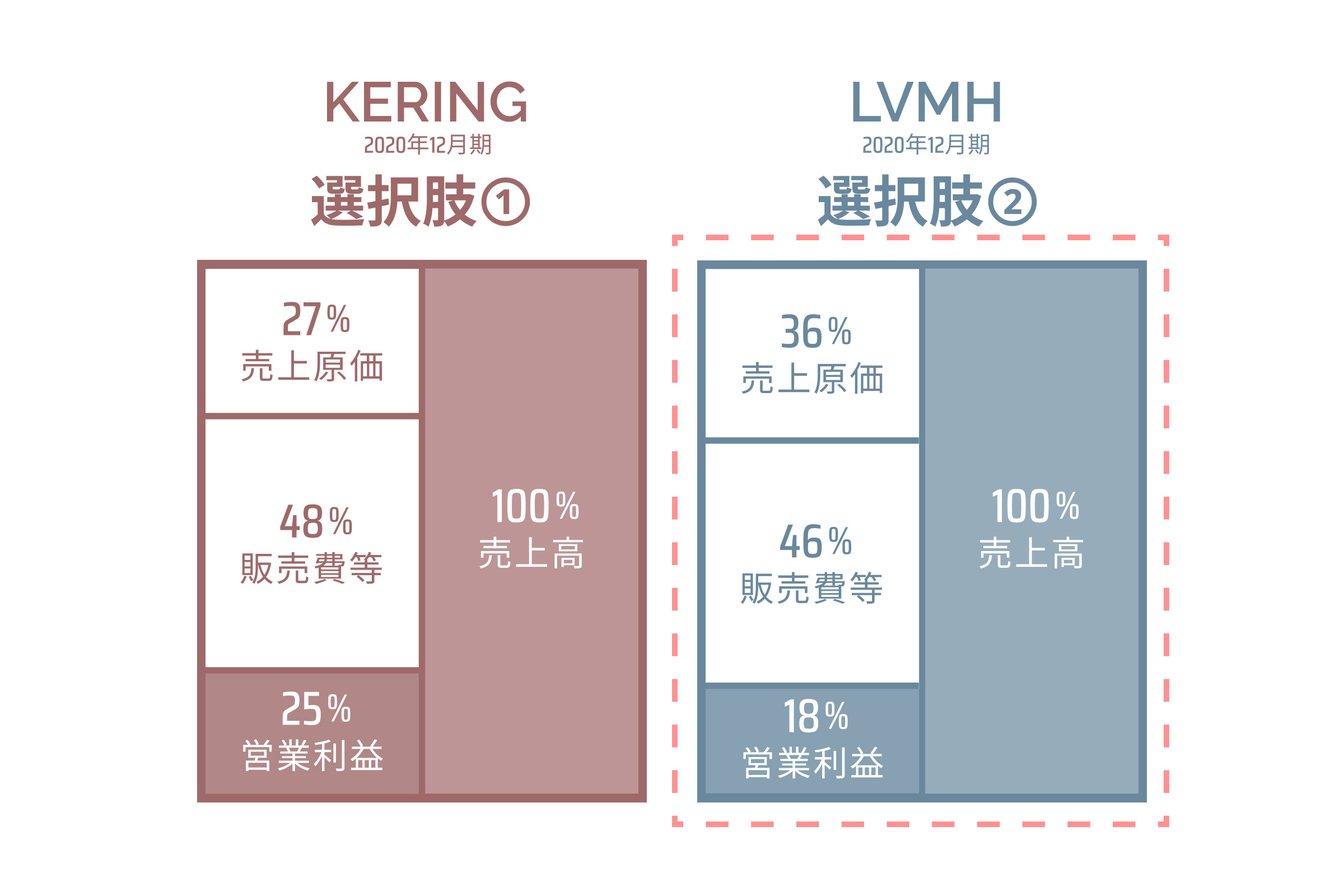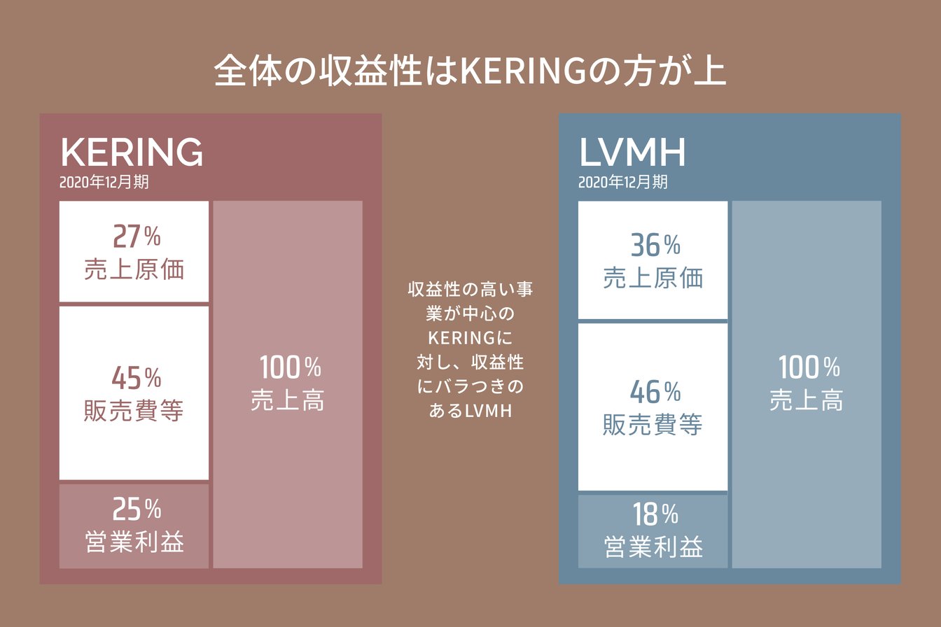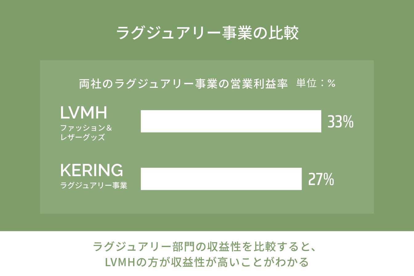 ラグジュアリーファッション事業で比較するとLVMHの方が高収益