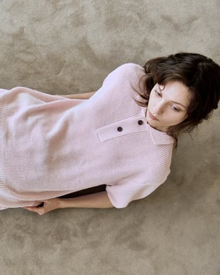 このジャケットもアポロ研究員たちの生活から着想を得た一着。アイスランドの地で遭難した際に発見されやすいようにと、目立つ服を身につけていた研究員の中でバッファローチェックのジャケットを羽織った人物を発見し、デザインソースとして引用した。インクジェットプリントで表現された象徴的な柄は、着込むたびに徐々に薄れていき、生地本来の風合いへと変容を遂げ、時間の経過とともに経年変化を楽しめる。格子の大きさでガラリと印象が変わるが、ブランドが採用したのはあえて大きめのもの。可愛らしくなりがちな大ぶりのチェック柄もシンプルなデザインで仕上げることで大人っぽい印象に落とし込んだ。バッファローチェックというと一般的には黒と赤の配色が多いが、落ち着いたトーンのブラックとオフホワイトの組み合わせは小綺麗で新鮮に映る。