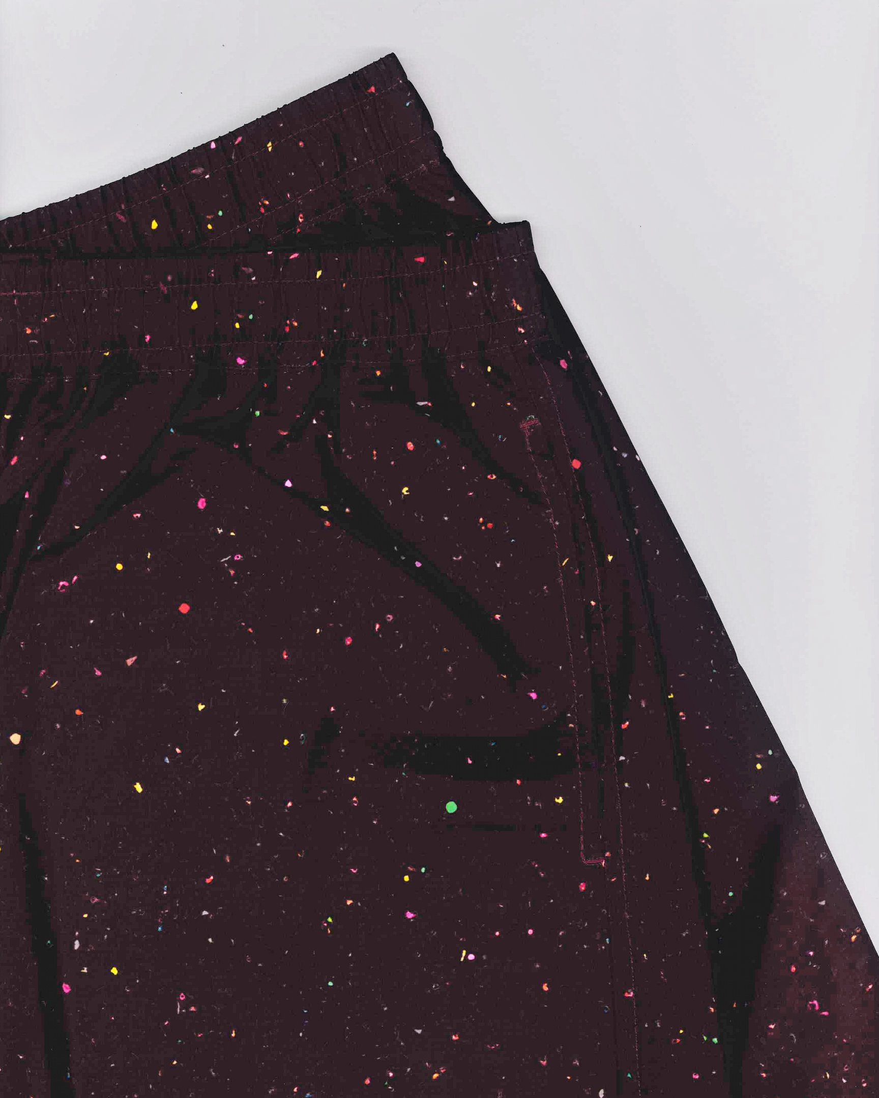 スターダストショーツと命名された「ヨシオクボ(yoshiokubo)」のショートパンツは、その名の通り、星のように散りばめられたカラフルなペイントのデザインが目を惹く一本。秋冬のイメージが強いボルドーをベースにしながら、飛び散ったインクを彷彿とさせるようなペイントでプレイフルに、膝上の丈感で軽快に仕立てた、これからの季節にぴったりなアイテムです。コンパクトなショートパンツは、トップスと足元にボリュームを持たせシルエットのメリハリをつけた着こなしがおすすめ。