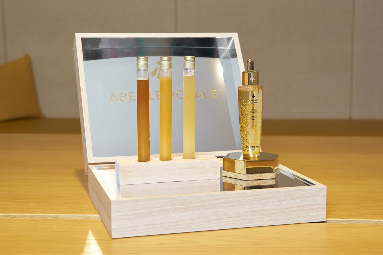 実は1830年に、ゲランの創立者であり科学者でもあったピエール フランソワ・パスカル・ゲランが残した書にもブラックビーについて記載があるほど。ゲランとブラックビーの歴史は長きにわたるのです。既存の美容液には1ヶ所で採取したブラックビーハニーのハチミツを採用していますが、新美容液にはヨーロッパの異なる3つの地域からそれぞれブラックビーハニーを採取し、フランス産のロイヤルゼリーとともに配合したことが大きな進化ポイントになると思います。