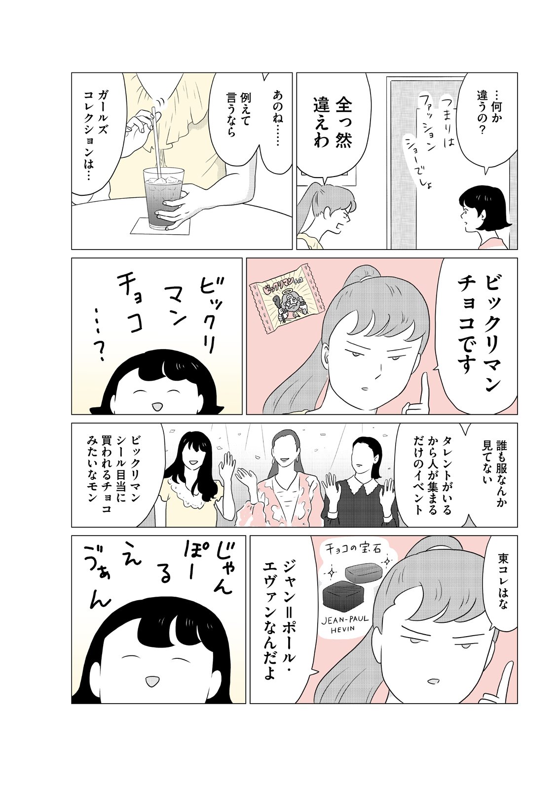 ー第3話で「東京ガールズコレクション」と「東京ファッションウィーク」の違いを「ビックリマンチョコ」と「ジャン=ポール・エヴァン」に例えるシーンは、分かりやすいだけではなく、くすっと笑ってしまう面白さがありました。