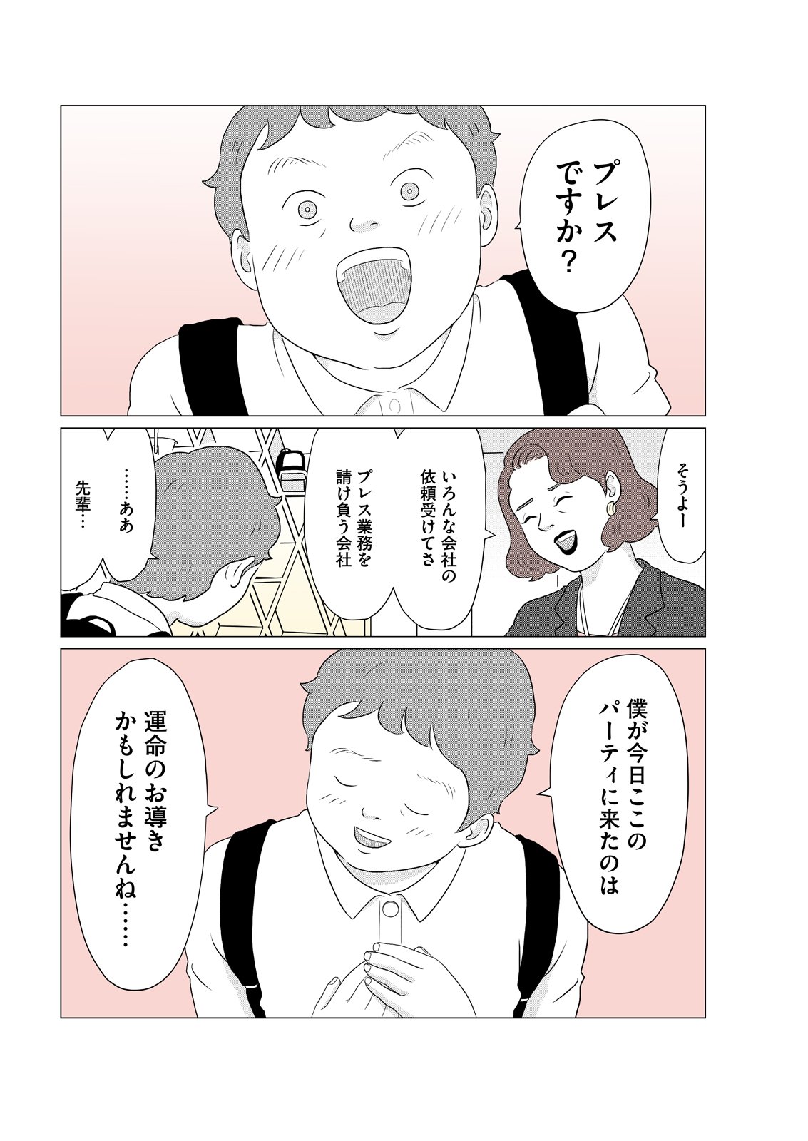 ブランドのレセプションパーティーに潜り込んだジャンは、PR会社の社長と接触を図る。 ©︎はるな檸檬/文藝春秋