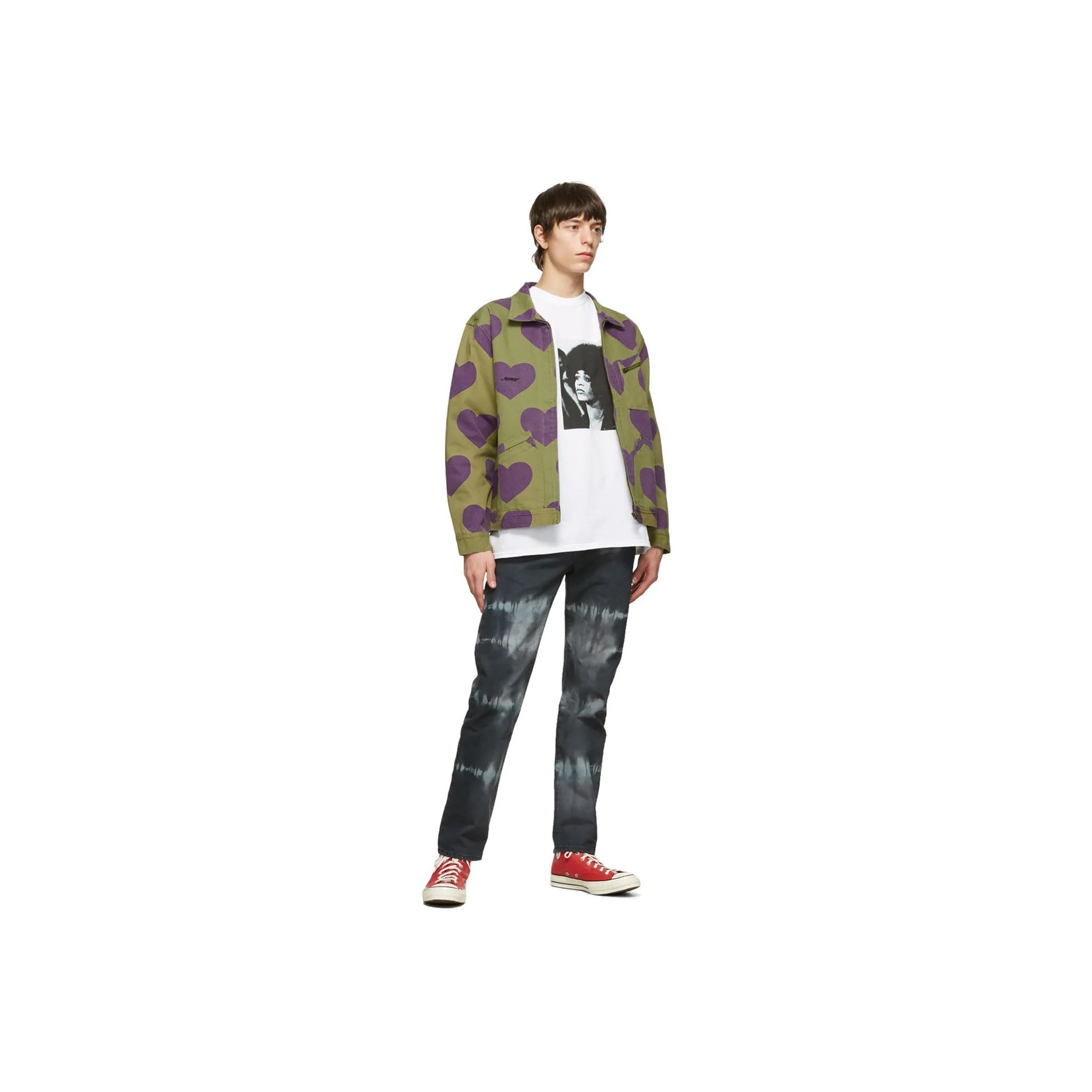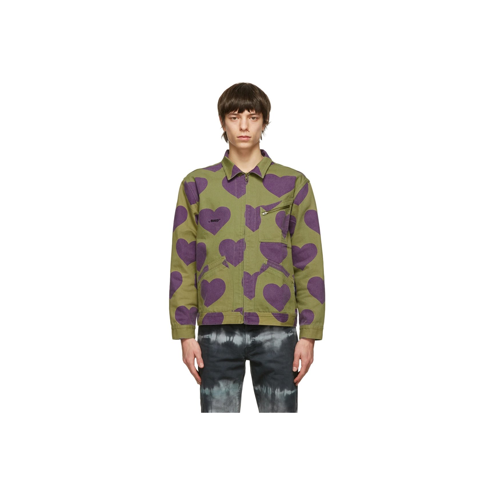 スイートなだけがハートモチーフではありません。「アウェイク ニューヨーク(Awake NY)」のコットンツイルジャケットは、カーキ&パープルでとことんエッジを効かせています。