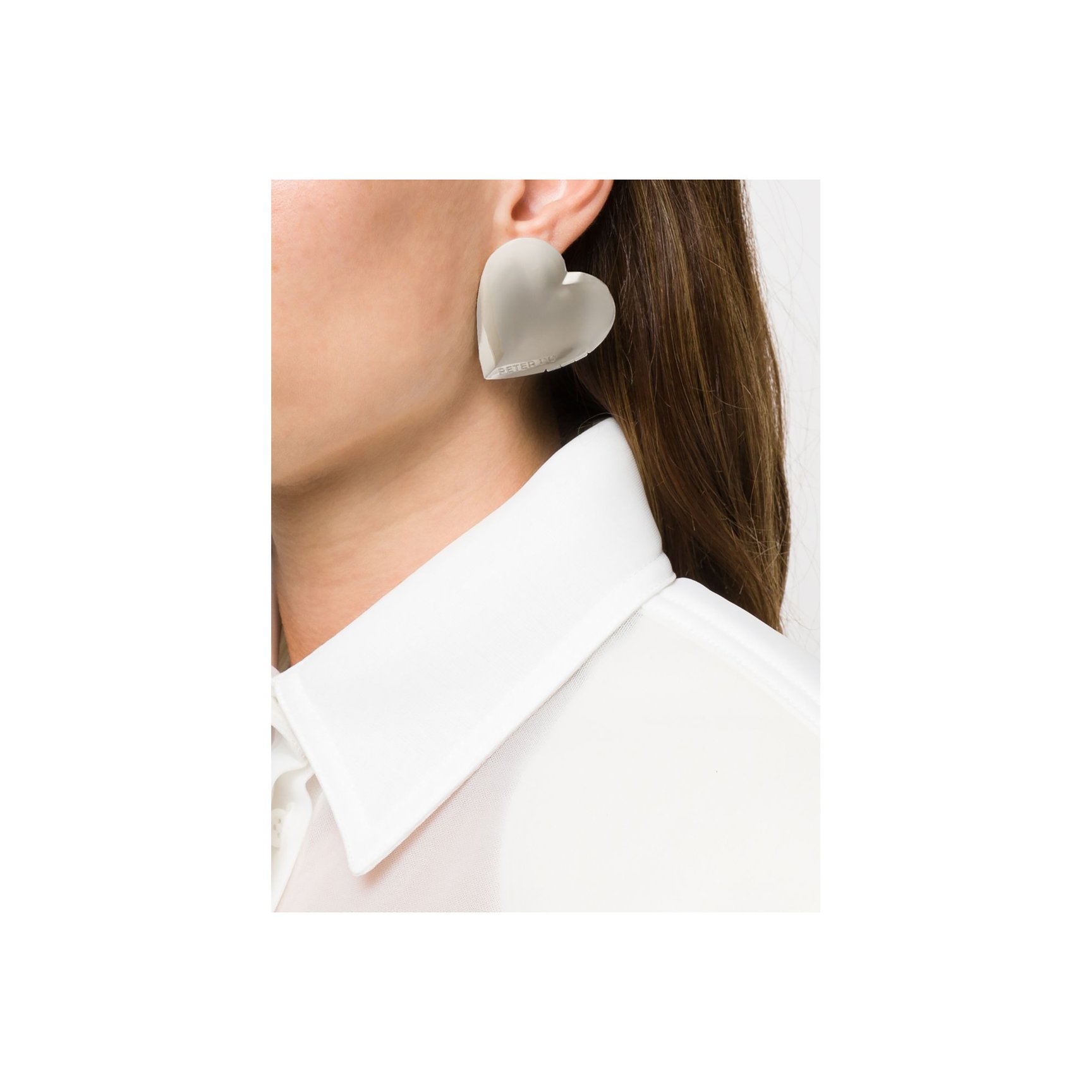 ビッグサイズのハートが耳元を飾る「ピーター ドゥ(PETER DO)」のピアス。大ぶりですが、ミニマルな造型とメタルの質感で嫌味なくクリーンに決まります。ハート部分は蝶番付きのロケット仕様というギミック。