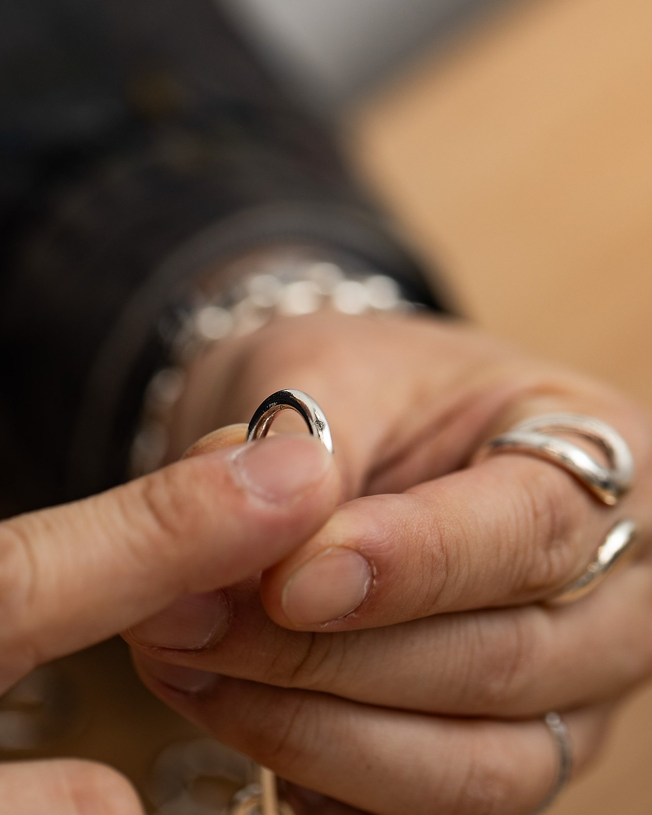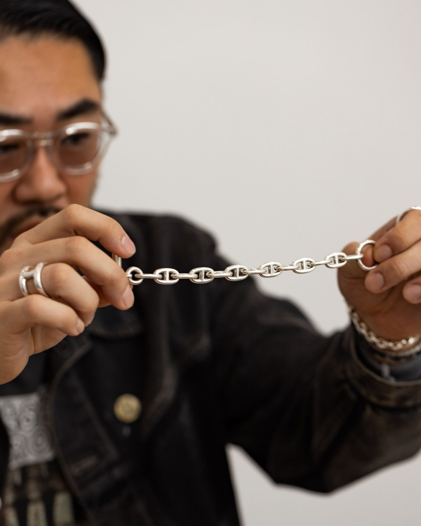 十倍:個人的にシェーヌダンクルは音というのもポイントの1つだと思ってます。だけど、この音も800と925で少し違って800の方が高い音が出るんですよね。800が好きな人は他の指輪やネックレスなども同じ60年代のものを探すことが多く、実はこの部分にこだわる人が多いんです。なので着けた時や振った時に出る音の違いなんかも気にしてもらえると面白いと思います。