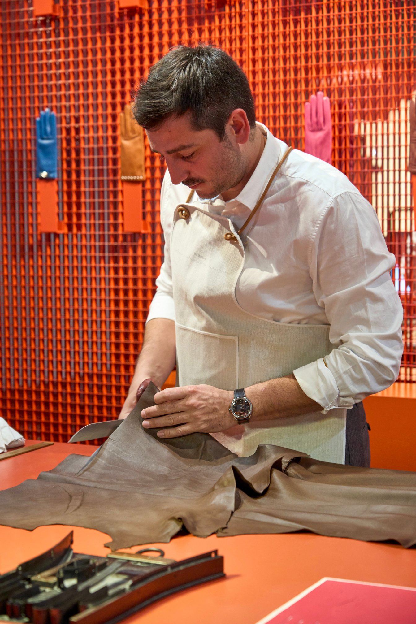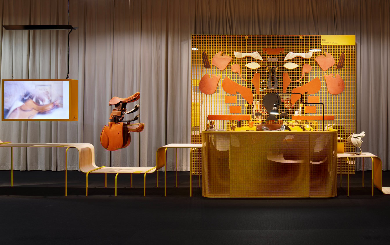 会場内は4つのテーマ<クラフトマンシップの伝統と文化、すばらしき素材、ものづくりの地に宿る力、「時」はエルメスの友>で構成され、成長と進化を続ける職人技の実演だけではなく、10人の職人それぞれと対話することができるのが特徴。