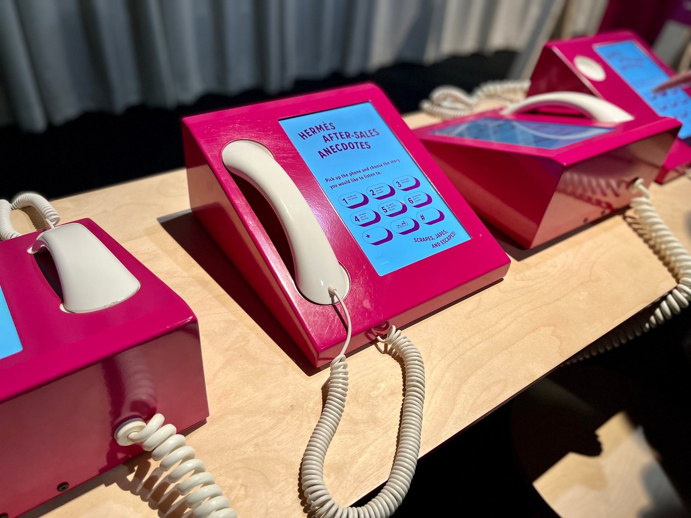 フロアに設置されている電話機では、実際に世界中のエルメスのアフターサービス部門に寄せられたユニークな顧客の声を「お客様相談窓口ストーリー」として聴くことができる。