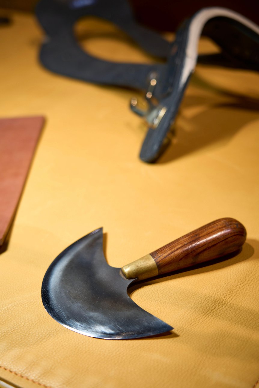 1837年の創業以来、エルメスの原点といえるのが馬具。その中でも象徴的なのが鞍作りだ。フランスから来日した職人が、使い慣れた道具や素材を用いて、制作に取り組む様子を見ることができる。