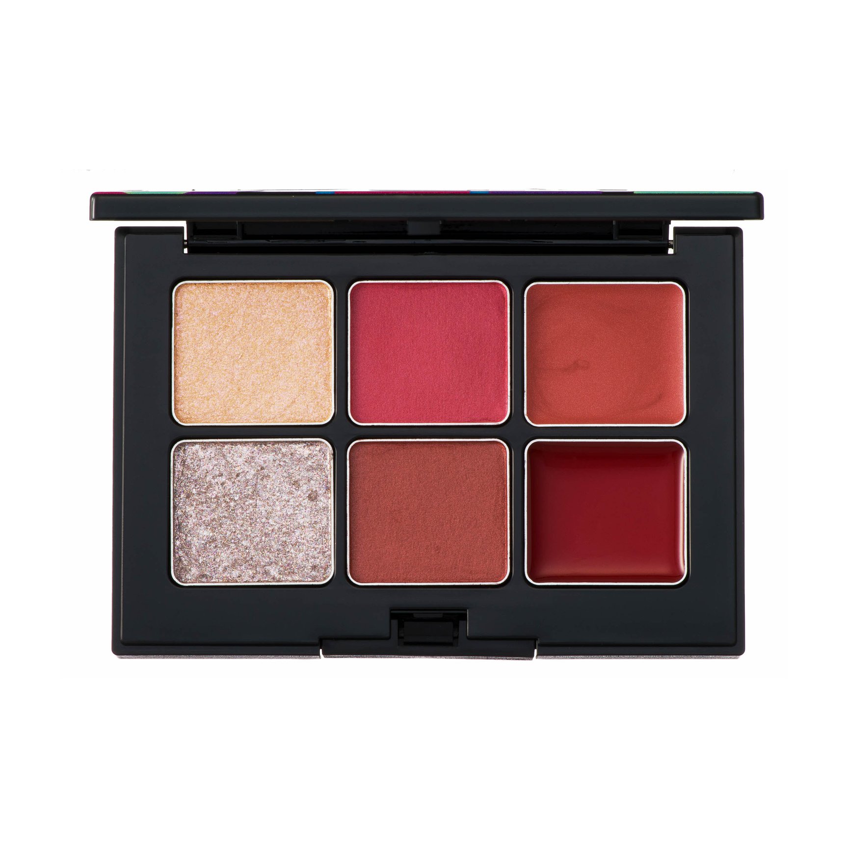 「ダズリングオパレット」(セットで6500)アンティークローズ(上段左から)パールベージュ、ウォームローズ、ピンクベージュ、(下段左から)パールカラー、レッドブラウン、チェリーレッド