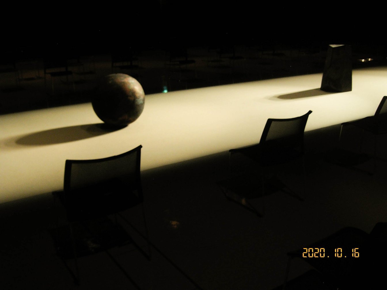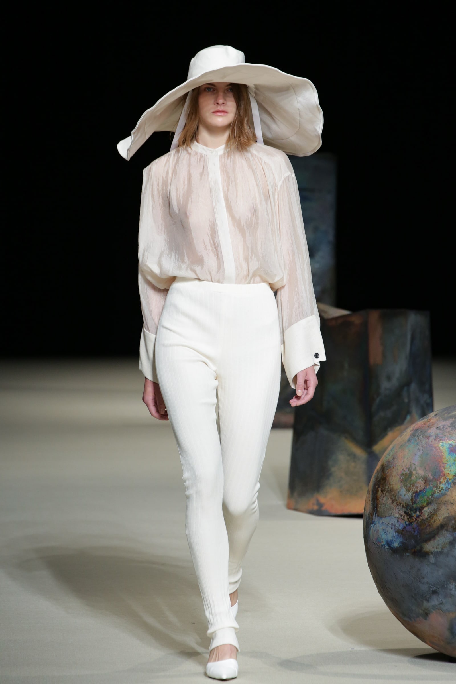 雨の中のマーチングバンドの演奏や個性的なスタイリングと演出が印象的だったファーストショーからちょうど2年。その時とは打って変わり、オブジェだけがポツンと置かれたデザイナーの言う非日常的な空間が、服そのもの美しさを引き立てていた。