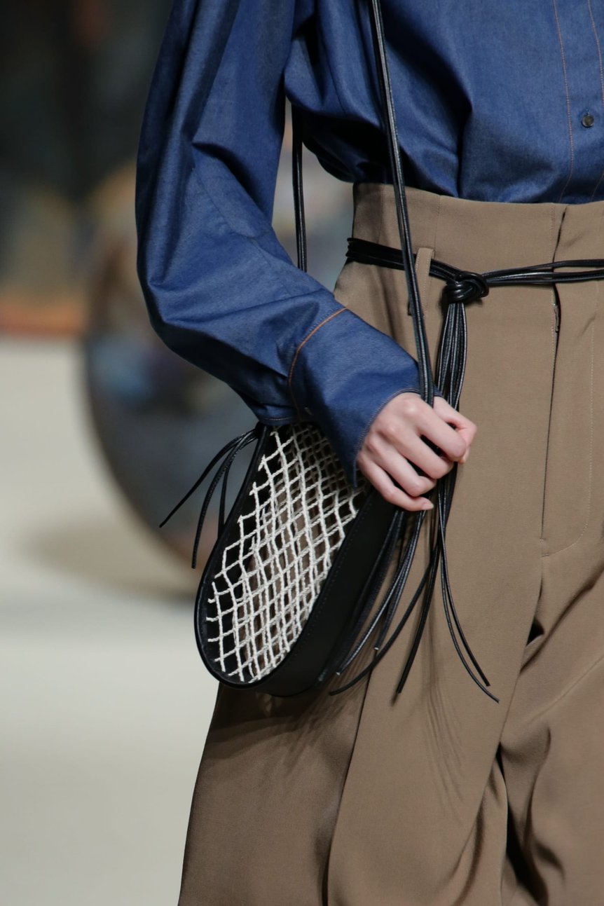 そんなランウェイに置かれた一際存在感を放つ鉱石のような丸や四角のオブジェ。これはロエベクラフトプライズ 2019でファイナリストに残った陶芸作家 橋本知成の作品で、ショーのために工房のある滋賀県から運び込まれたものだという。デザイナーの印は初めて橋本の作品を見た時にその魅力に引きつけられ、ショーへの作品提供を依頼した。