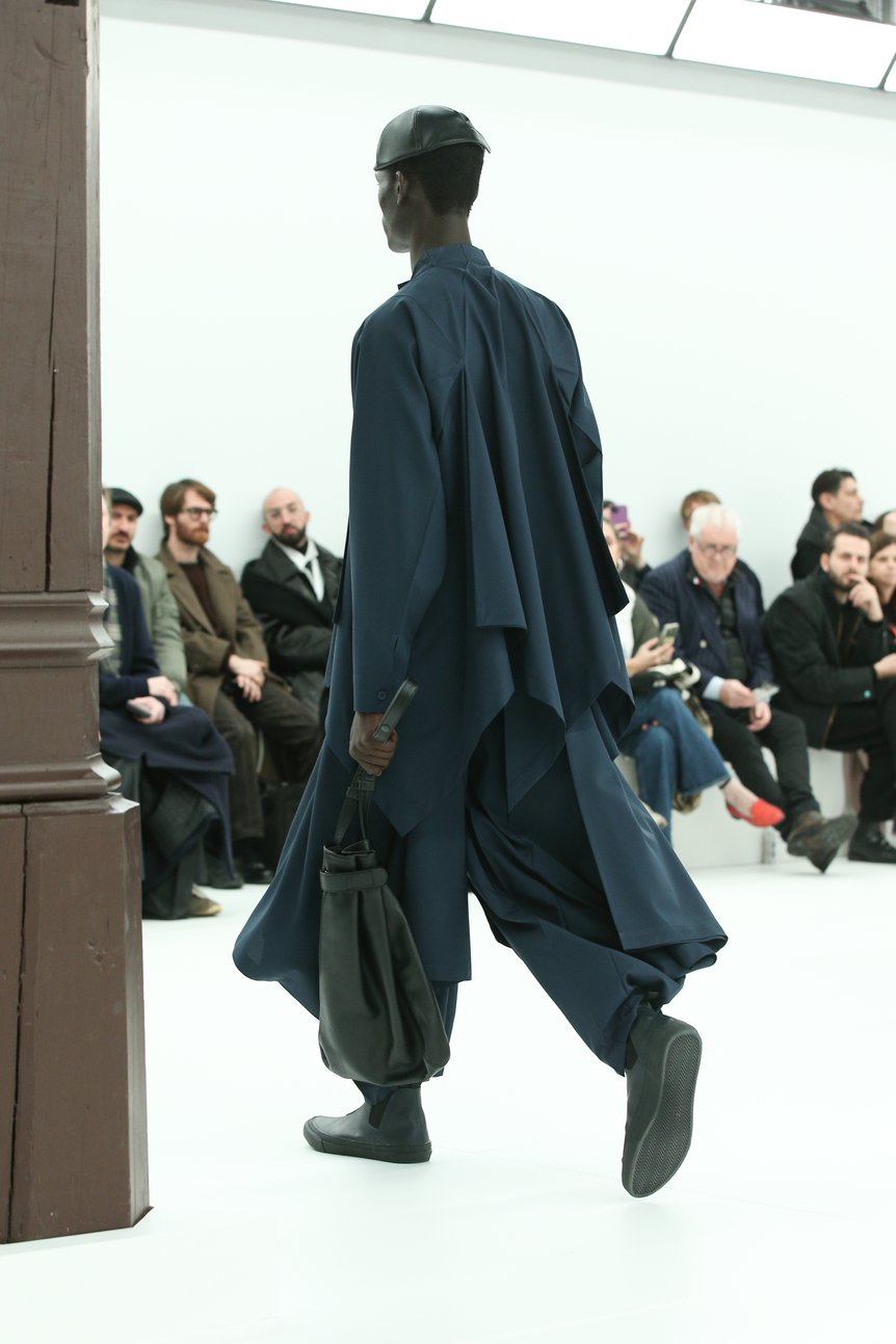 ショーの翌日からは、同会場にて一般入場可能な特別展示「フライ・ウィズ・アイム メン(FLY WITH IM MEN)」が開催された。このエキシビションは、"一枚の布"が衣服になるための構造や、生地の生産背景などが展示され、ブランドのクリエイティブな意図を伝える上で、ショーと同じくらい重要なものだった。それだけに、ショー終了直後にこの展覧会を見ることができたなら、ショーはまた違った印象を与えただろう。従来のランウェイではなく、新しい発表形態を模索してもいいのかもしれない。"新しい日常着"をエンジニアリングするこのブランドが、これからどのようなクリエイションへと発展を見せるのか楽しみだ。