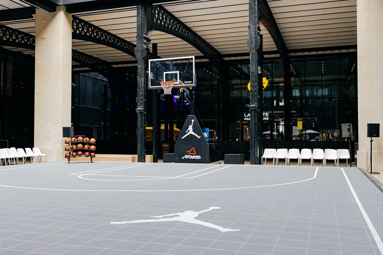 パリ3日目の朝は、レ・アールにあるバスケコート併設のショップ「Airness Basketball Store」へ向かいました。