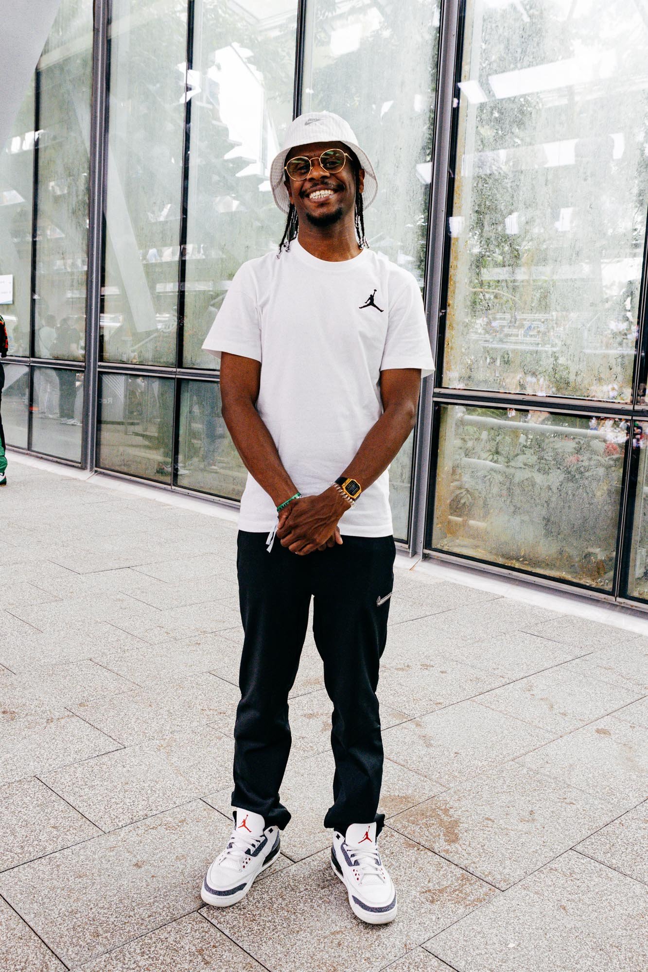 来場者は、Quai 54の限定ウェアをはじめ、「オフ-ホワイト™(OFF-WHITE™)」やジョーダン ブランドのアイテムを着用している人が多くみられました。