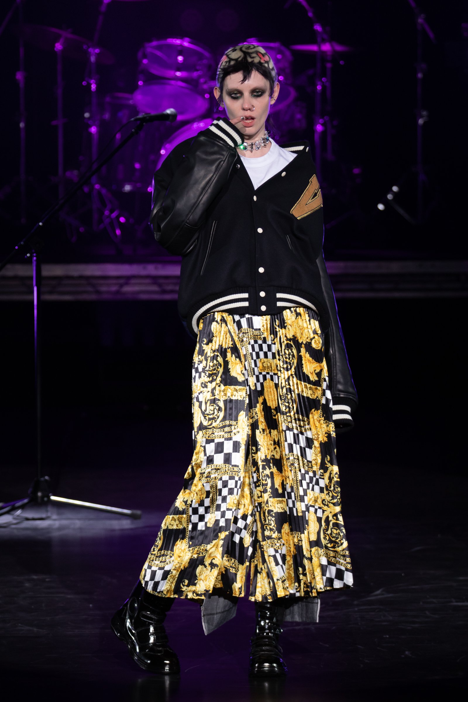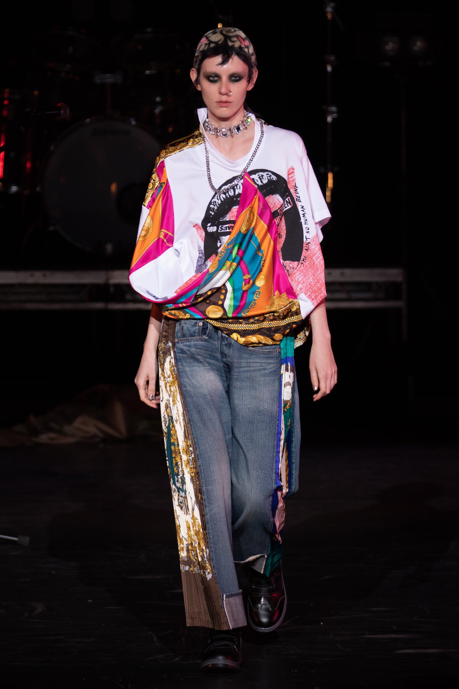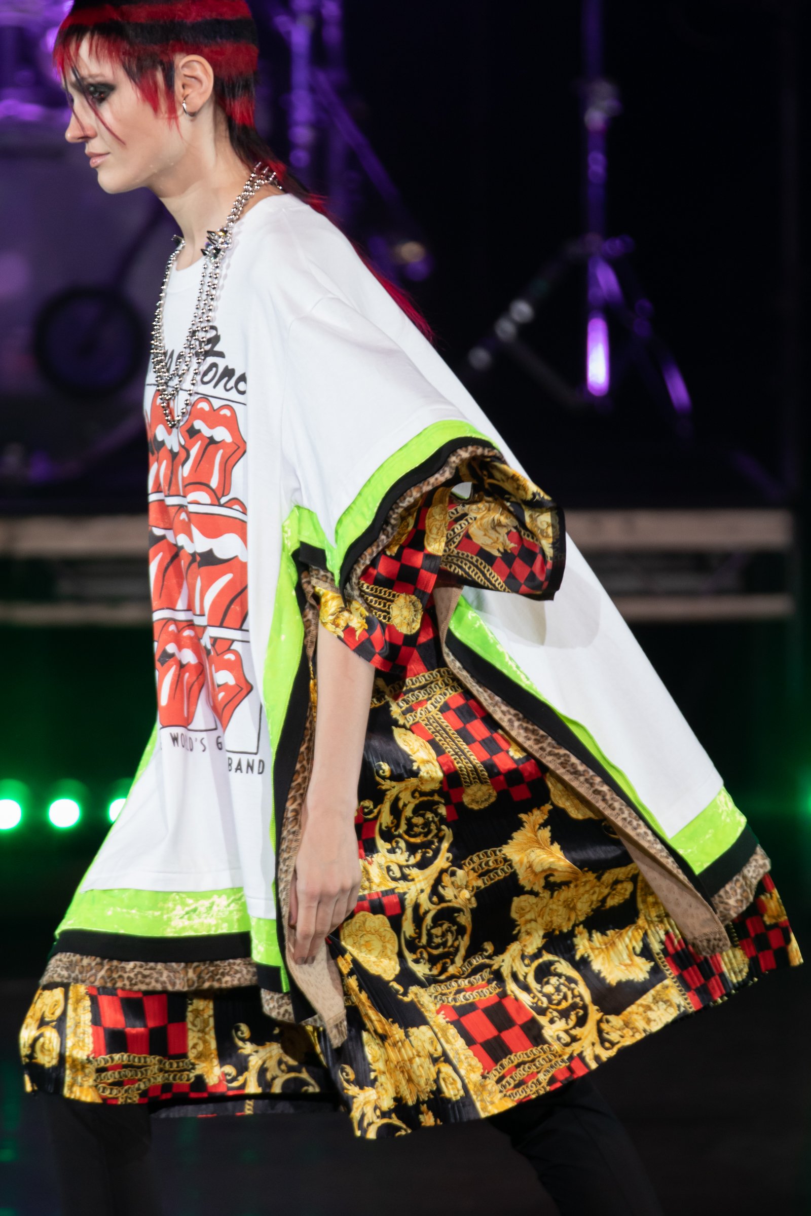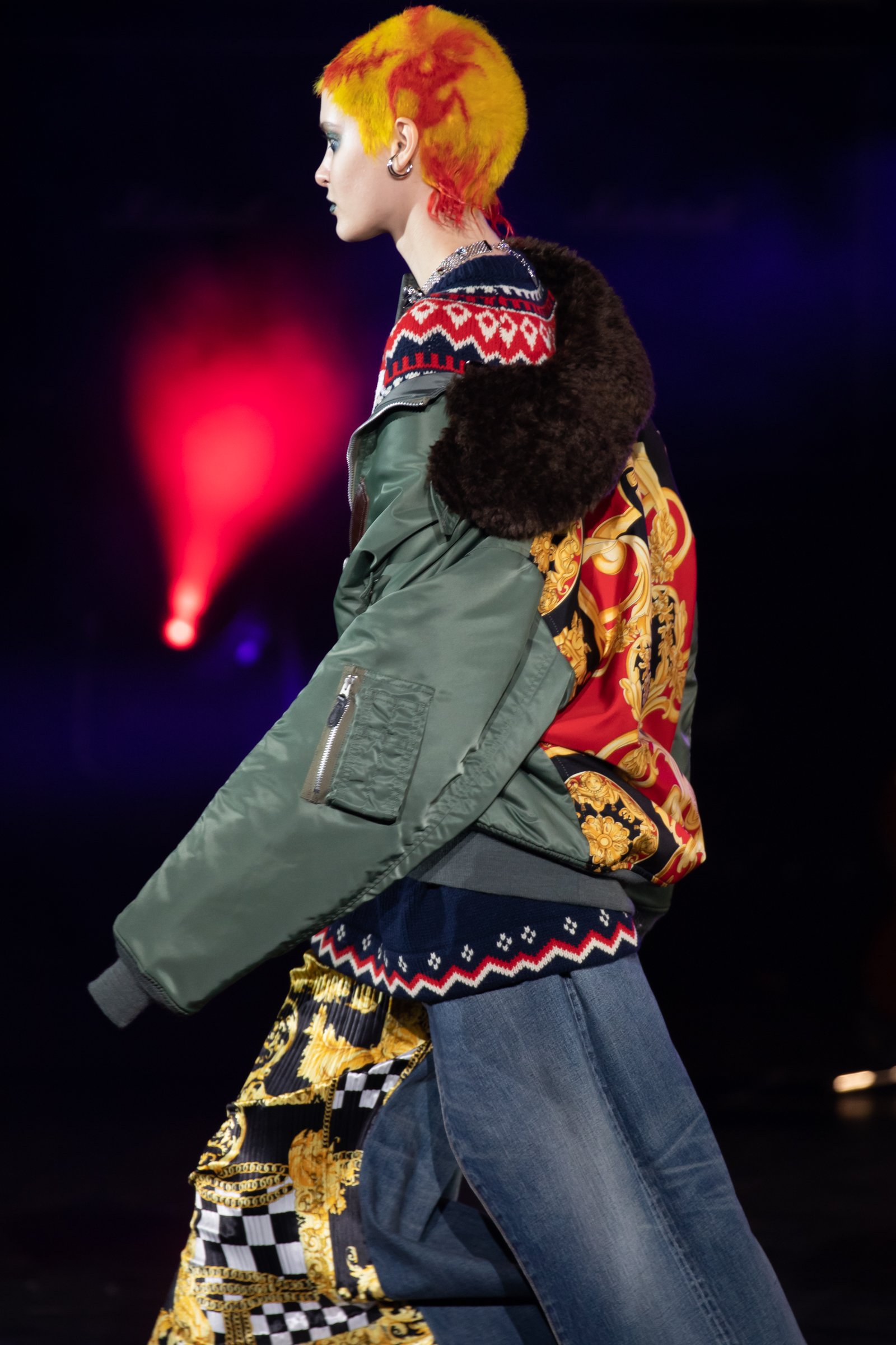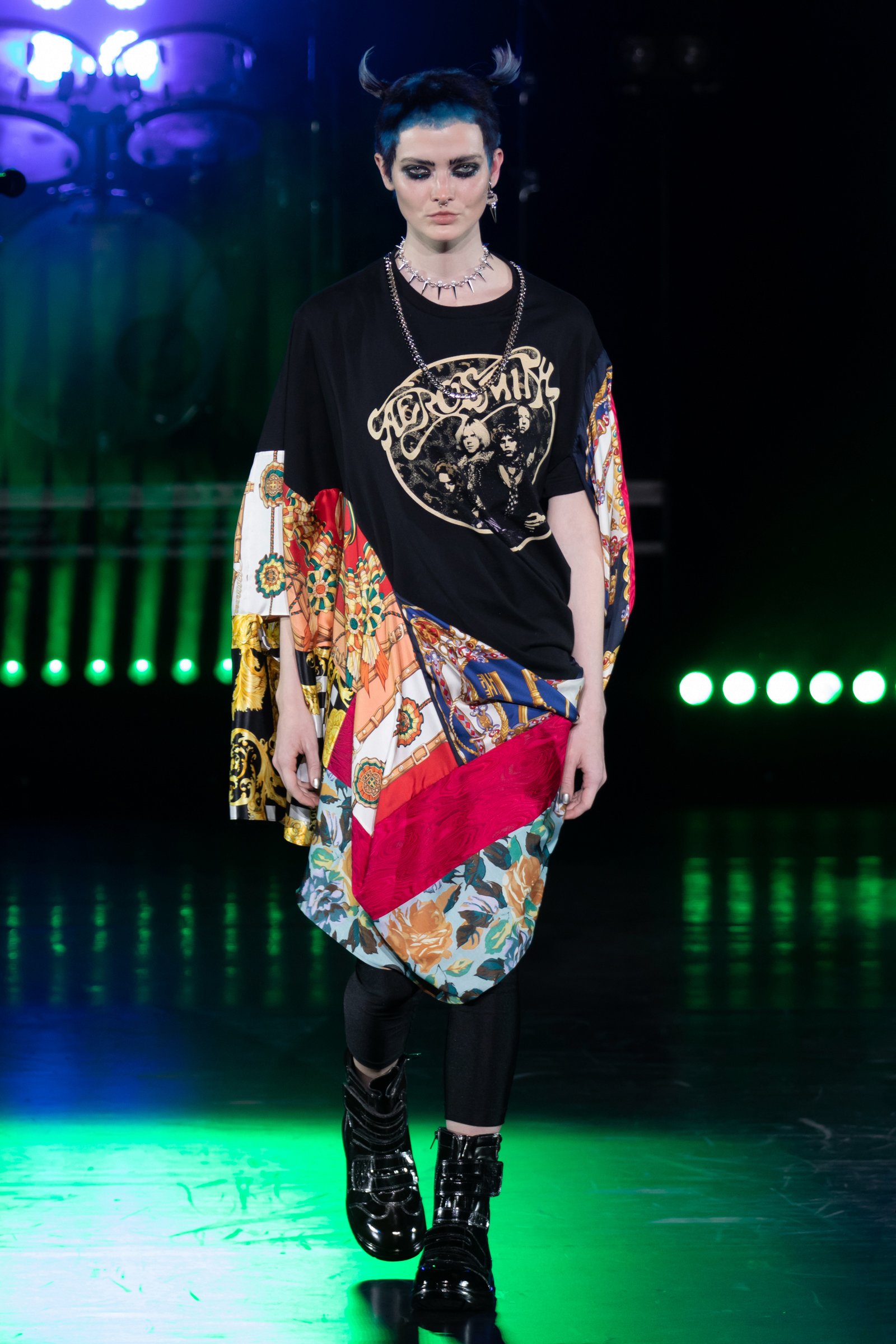 ちなみに、「ベルサーチ」のスカーフを用いたコラボシリーズは「Junya Watanabe Comme des Garçons x Versace Iconic Print Project」と命名されている。着流しのコンビポンチョ、前面スカーフで背面デニムのスカート、パッチワークで刻んだスカートなど計6種あり、他はオリジナルだ。黄黒のバロッコ柄はフィーチャーされていたが、メデューサは視認できていない。