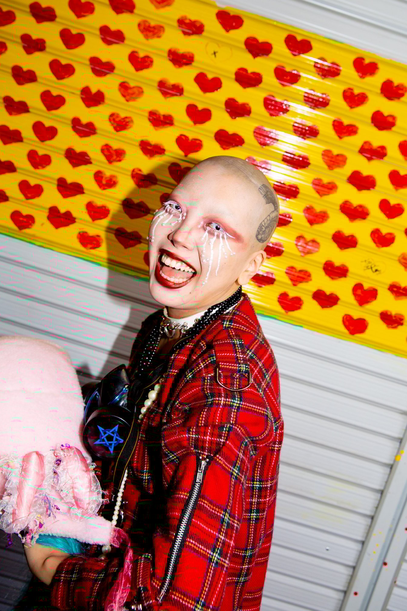 彼女は、「東京サイコパス」という最“狂”パンクアイドルという顔を持つ一方、文化服装学院に通っていた刺繍作家でもあり、元々は看護師として働いていた特殊な経歴を持つ。見た目やSNSでの過激な発言からは想像がつかないほど明晰に、現在の自分と過去、ファッションを語る彼女に「正直、優しい声と喋り口で驚いています」と打ち明けたところ「よく言われます。元々看護師というのもあるし、一応長女だから。営業妨害発言だけど、根が真面目で素直なんです」と笑いながら答え、「学級委員とかをやるタイプだったし、全国2位の合唱部で副部長だったし、勉強もそれなりに出来る方だったんですよ」と教えてくれた。