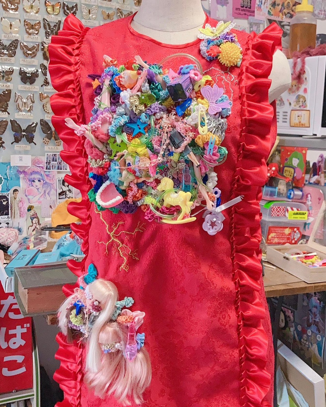 綺麗、気持ち悪い、グロい、可愛い、カッコいい、ダサいは全部紙一重だと思っているんです。それでも、見ず知らずの通行人を5秒止めることができたら一流だ、というのが持論です。それくらいインパクトのあるものってなんだろうというのは常に考えています。あとは、黒色を使わずに、絶望や苦悩を表現して、誰かの御守りになればいいなと思っています。お母さんが縫って作ってくれた、ボロボロの体育着入れやぬいぐるみを一生涯大事にしたくなる気持ちと同じ感覚です。それでしんどい日をちょっとでも乗り越えられれば、自発的に動き出す時の一押しになれるかな、と。極論をいえば「執念とも取れるような強い気持ちがアイテムに宿っているから、簡単にメルカリには出品できない/しづらいアイテム」を作りたいです。それは、別に服じゃなくてもいい。そういう新しい「何か」を世の中に生み出したいです。