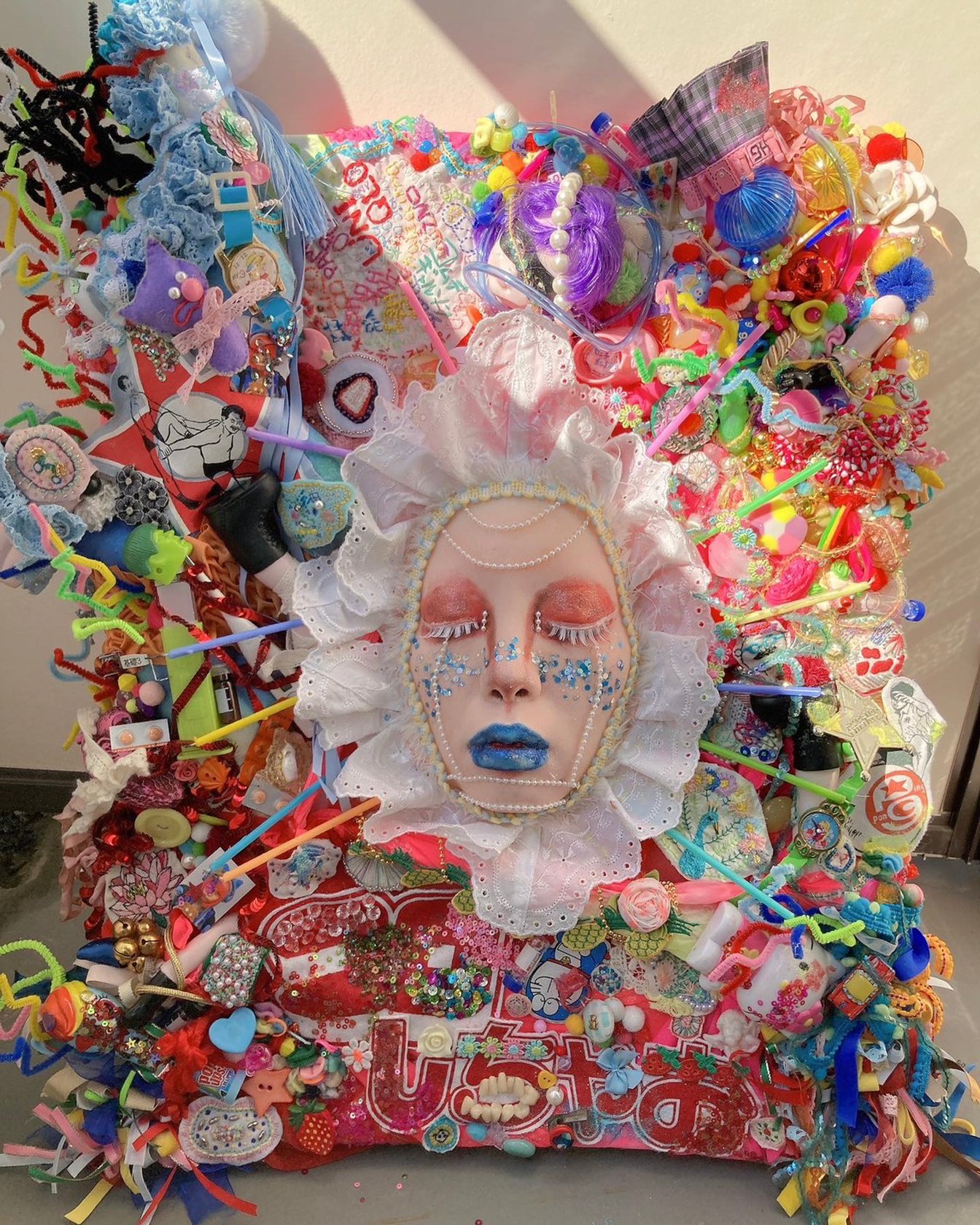 ーインスタグラムのフィード投稿でピン留めされている作品は一際目を引き、額縁に模られた自分の顔は禍々しくもある一方で、祭壇のようだなとも感じます。