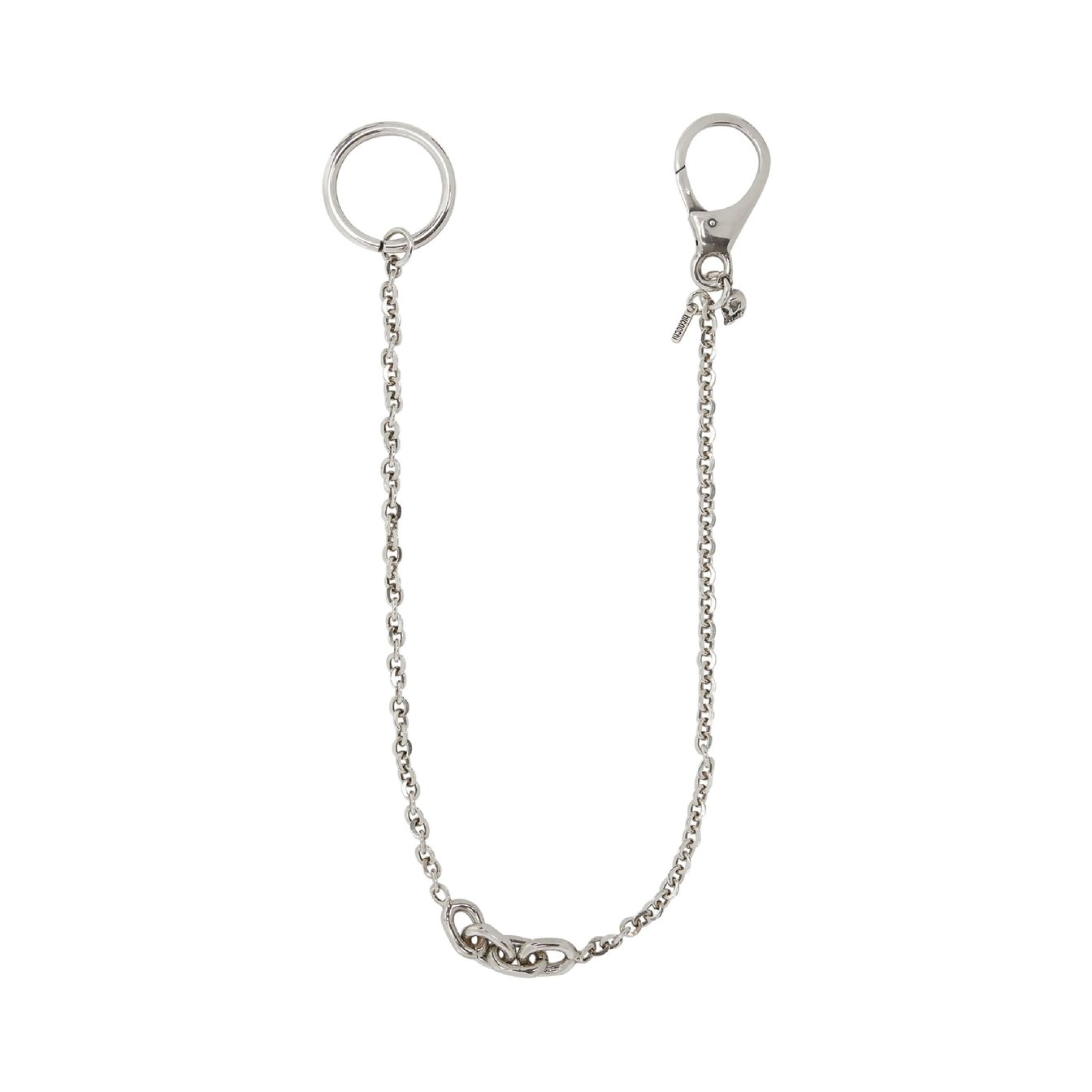 「エマヌエーレ・ビコッキ(EMANUELE BICOCCHI)」のシルバーキーチェンは、SSENSEだけの限定アイテム。ハンドメイドでつくられた精巧なチェーンは、よくみると不均一なデザインが特徴的。ボトムスにつけた時に一番目立つ部分には、大きめのデザインチェーンが施されてます。シルバー925なので、日常使いにもぴったり。